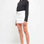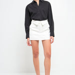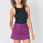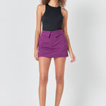From desk to dinner, this versatile mini skort is a must-have for your wardrobe. With a folded waistband and faux welt pocket detail, this skort adds a touch of style to your everyday look. Dress it up or down, the options are endless with this must-have mini skort.