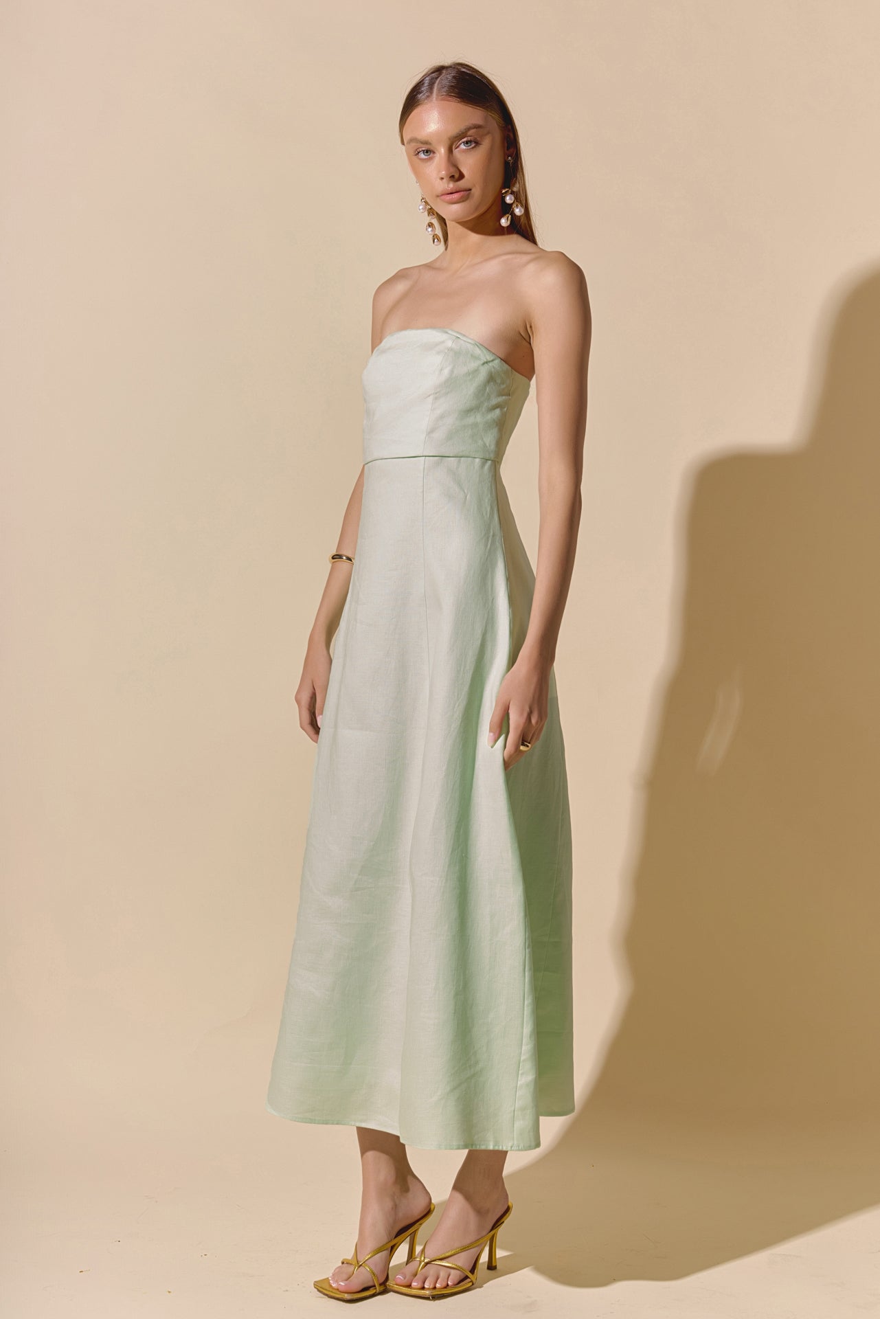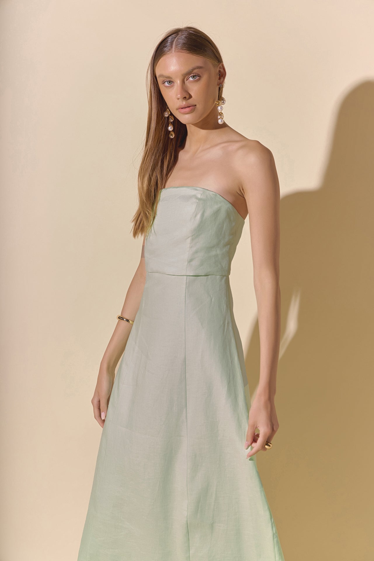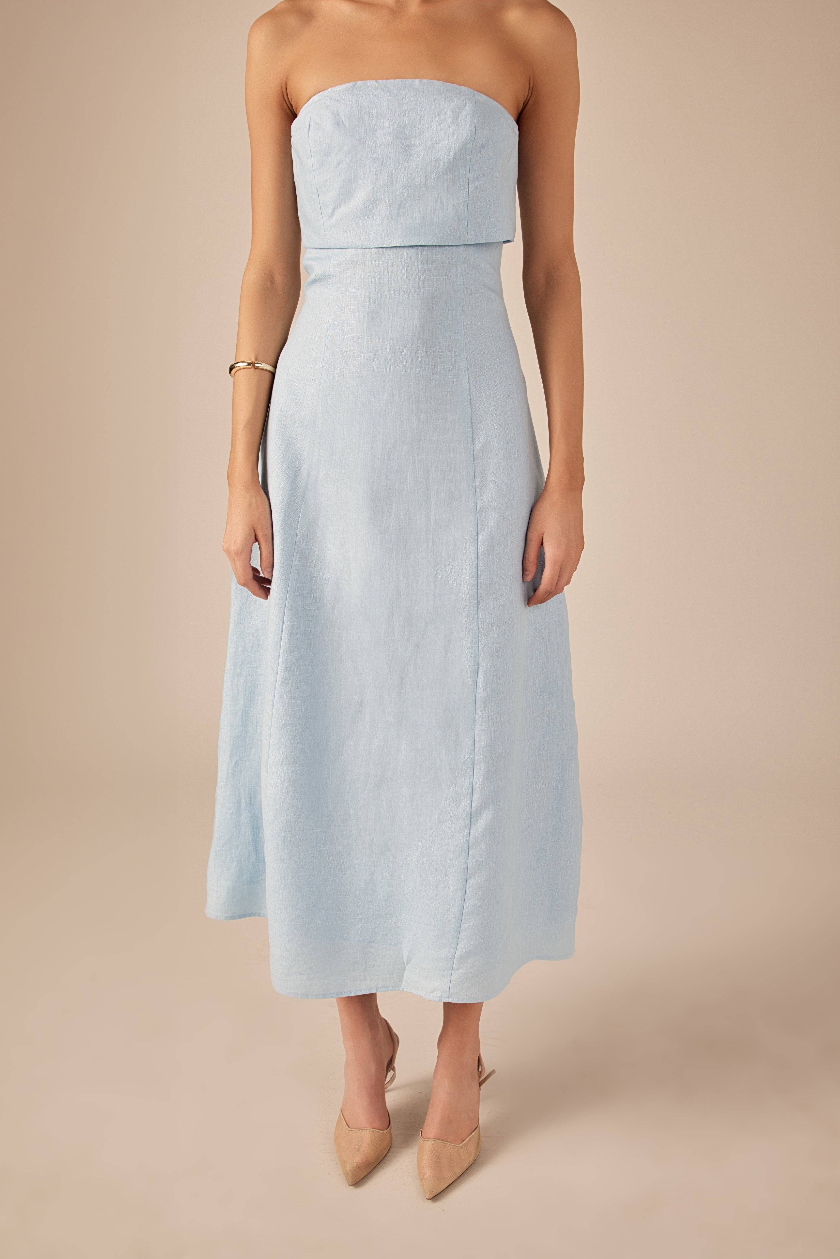 Introducing our Lucia Folded Strapless Linen Maxi Dress, perfect for warm weather and effortless style. Made with high-quality linen fabric, this dress is breathable, lightweight and oh-so-comfortable. The folded bust adds a touch of sophistication, while the strapless design and smocking detail create a flattering silhouette. Versatile and chic, this dress is ideal for any occasion. Elevate your wardrobe with this must-have piece that combines comfort and style. Shop now and make a statement with our Lucia Folded Strapless Linen Maxi Dress.