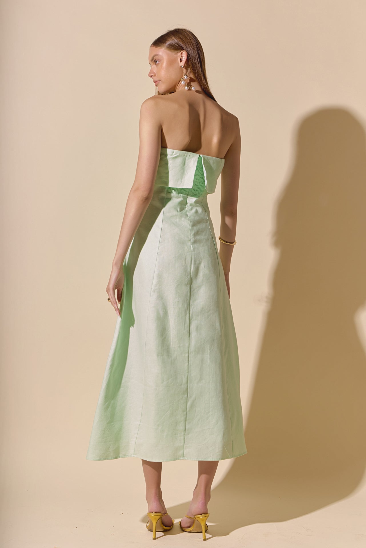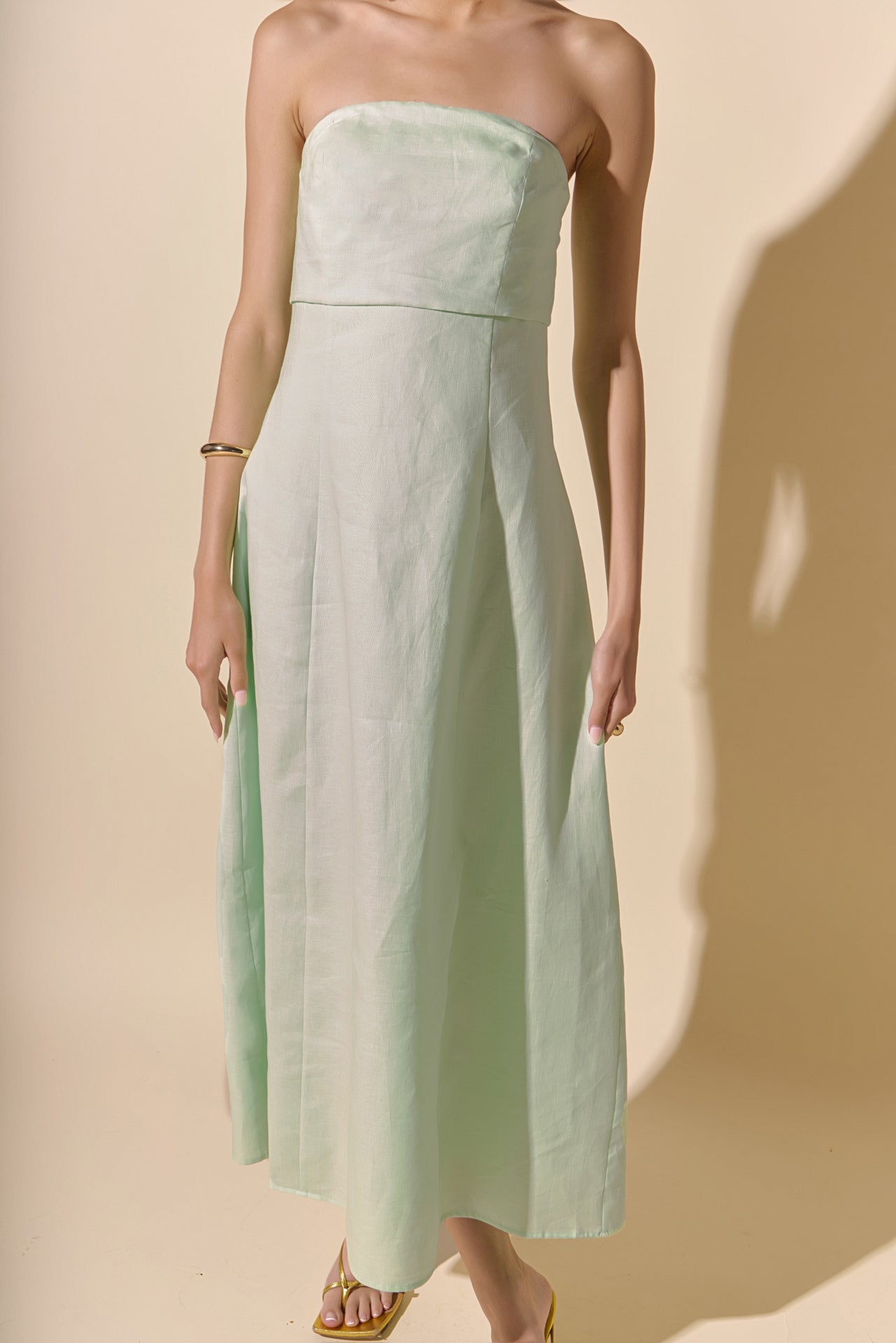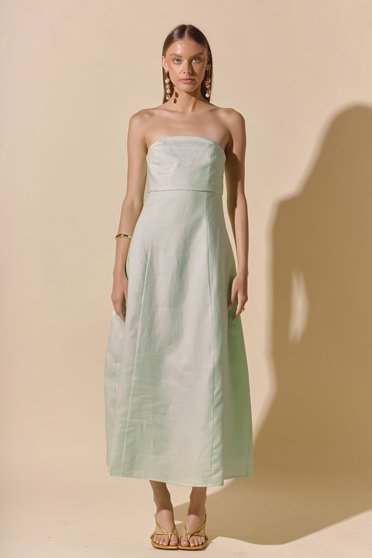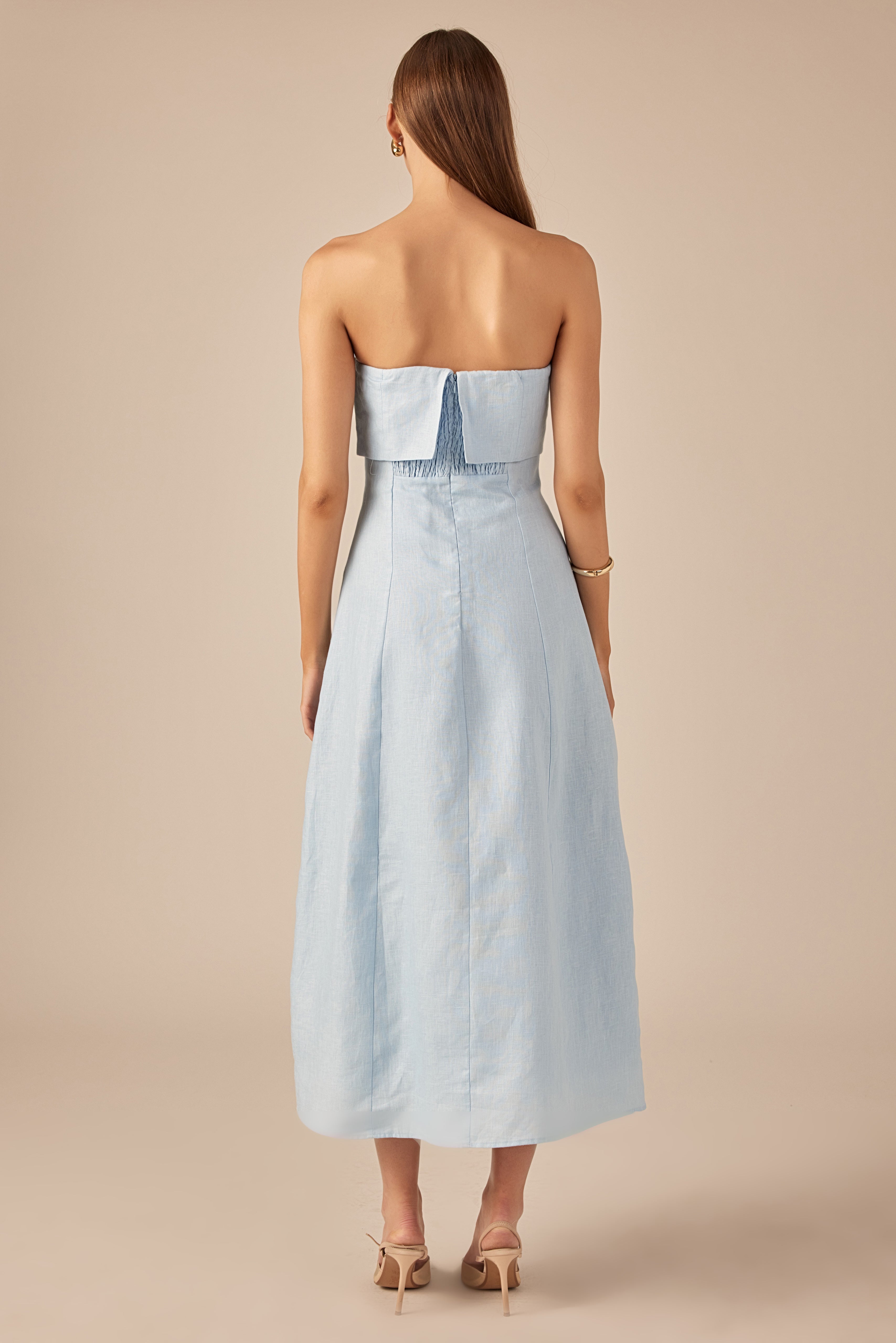 Introducing our Lucia Folded Strapless Linen Maxi Dress, perfect for warm weather and effortless style. Made with high-quality linen fabric, this dress is breathable, lightweight and oh-so-comfortable. The folded bust adds a touch of sophistication, while the strapless design and smocking detail create a flattering silhouette. Versatile and chic, this dress is ideal for any occasion. Elevate your wardrobe with this must-have piece that combines comfort and style. Shop now and make a statement with our Lucia Folded Strapless Linen Maxi Dress.