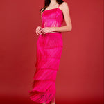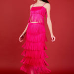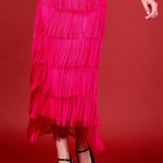Introducing our Fringe Tiered Maxi Skirt, perfect for the free-spirited fashionista. This skirt exudes bohemian vibes with its fringed details and flowy maxi length, making it a must-have for any music festival or summer getaway. The tiered design adds dimension and movement, while the waist band provides a comfortable and flattering fit. Dress it up with heels for a night out or pair with sandals for a beachy look. Embrace your inner wild child with our Fringe Tiered Maxi Skirt. Shop now and elevate your wardrobe with this unique statement piece.