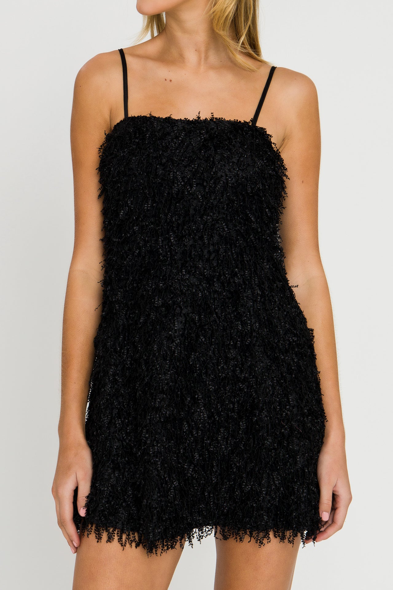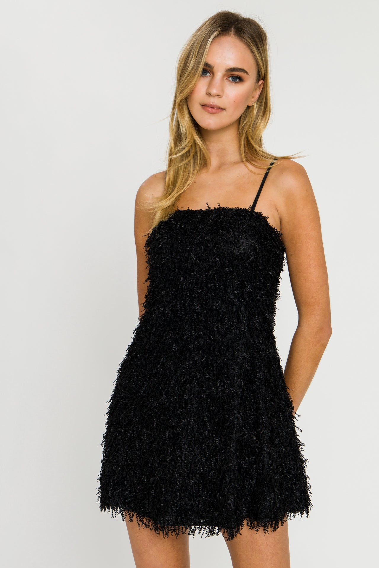 Redefine your fashion sense with this Fringe Flare Mini Dress. Crafted from stretch fabric for a comfortable fit, this mini dress features adjustable straps and a flattering flare silhouette to ensure a perfect fit. A signature metal zipper at the back adds a dynamic finish, perfect to make your own style statement.