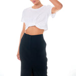 This is a top that will add some fun and flirty style to your wardrobe. The front tied detail makes it unique and eye, catching, while the crop length makes it perfect for showing off your curves. Pair this with jeans or shorts for a look that's both casual and chic.