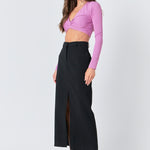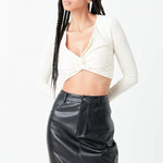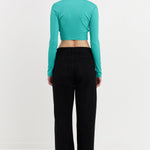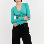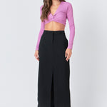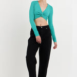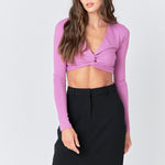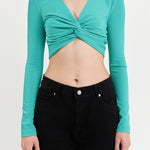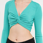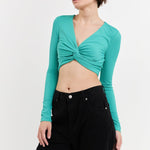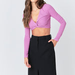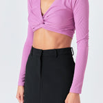 This top is the perfect mix of fun and flirty. The front twist cropped long-sleeve top can be dressed up or down, making it perfect for any occasion. The fitted, long sleeve, the crop-length top is made of a soft knit material that is sure to keep you comfortable all day long.