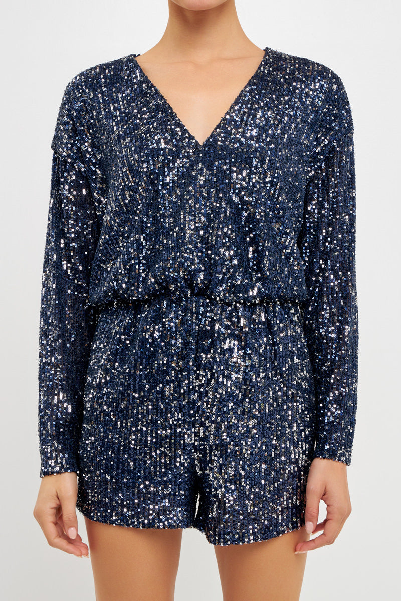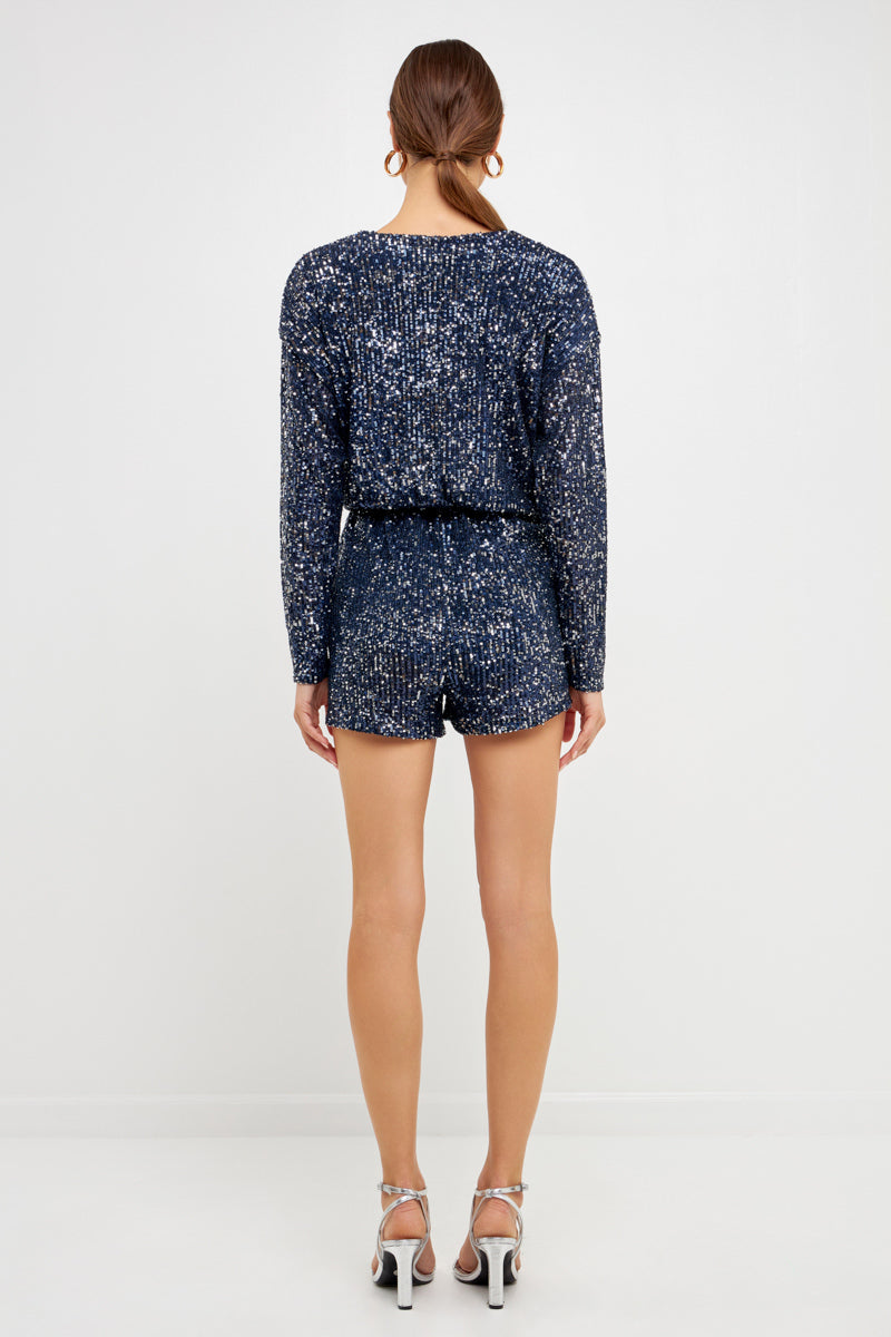 Long Sleeve Sequin Romper