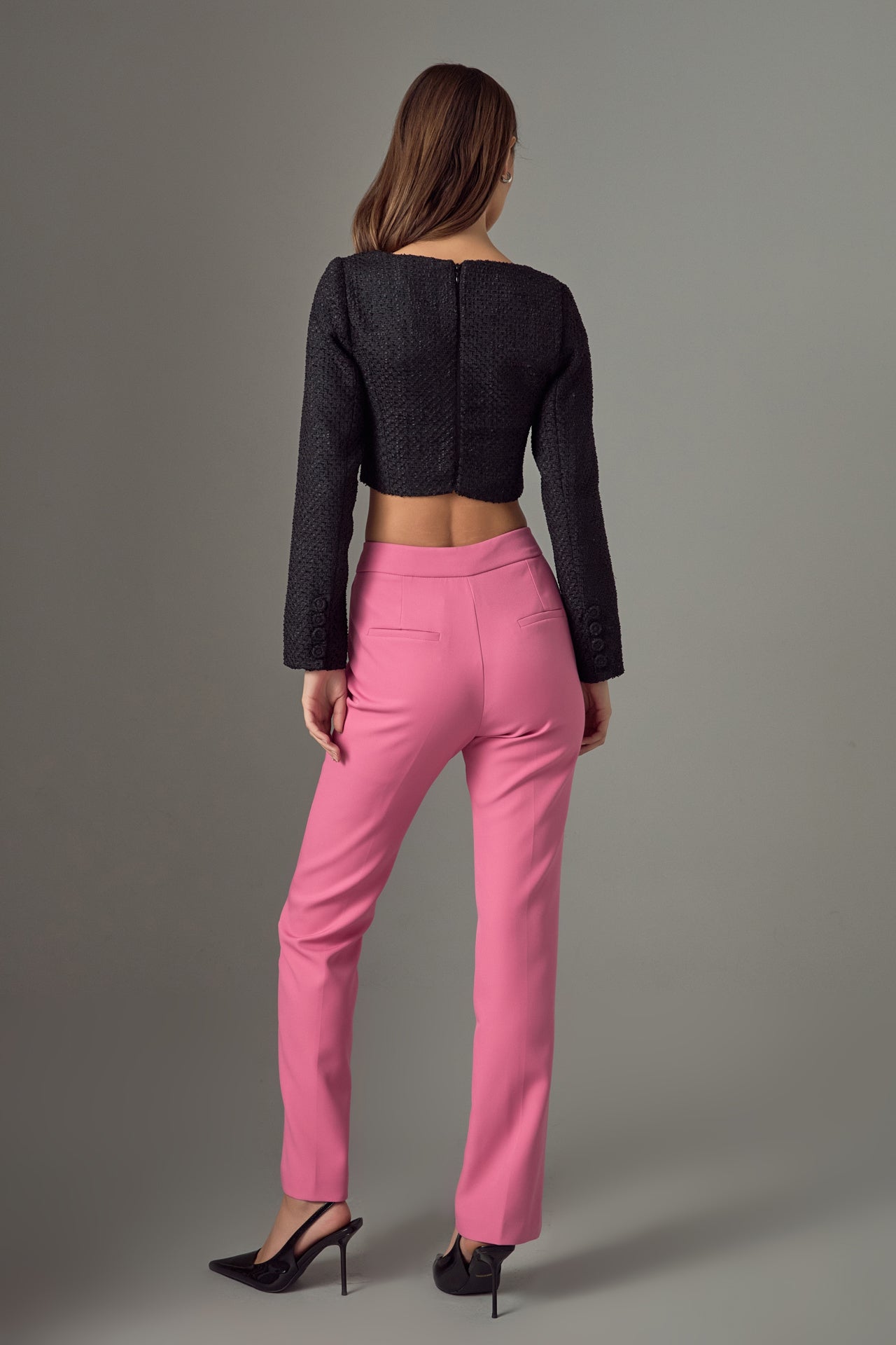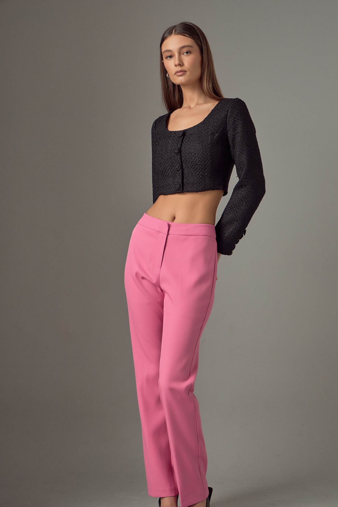 Looking for the perfect pair of pants? Look no further. Our full length low rise pants feature a slight flare and mid to low rise fit. The soft fabric will keep you comfortable while looking sharp. Perfect for a night out or an afternoon lunch these full length low rise pants are stylish trendy and sure to turn heads.