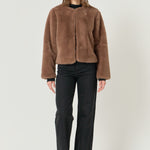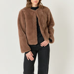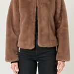 Stay stylish and cozy with our luxurious Faux Fur Lady Jacket. Crafted with soft fur, this jacket is the perfect addition to your winter wardrobe. The round neckline and lady jacket fit add a touch of femininity, while the long sleeves keep you warm on chilly days. Stand out from the crowd with the unique and timeless design of our Fur Lady Jacket. Perfect for any occasion, this jacket is sure to turn heads and keep you warm. Shop now and elevate your winter fashion game!