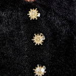 Our Fuzzy Jewel Sweater Top is the perfect addition to your wardrobe this season. Featuring a fun and fluffy knit a cropped length and a flattering collar and a short front placket this unique piece will surely turn heads. Add some extra elegance and sophistication to your outfit and stand out from the crowd with this on-trend piece. You won't be disappointed by this eye-catching top built for comfort and style. Shop our Fuzzy Jewel Sweater Top now!