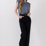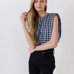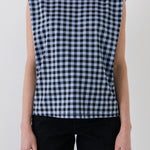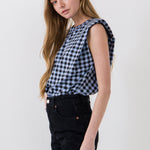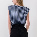 Enhance your summer wardrobe with our Gingham Print Shoulder Pad T-Shirt. Featuring a classic, eye-catching gingham print, this top will add a touch of sophistication to any outfit. The knit shoulder padding adds a unique twist to the standard t-shirt, providing both style and comfort. With a sleeveless design and relaxed fit, this top is perfect for warm weather and can be dressed up or down. Whether you're heading to a picnic or a night out, this t-shirt is a versatile must-have. Shop now for this on-trend piece and stand out from the crowd.