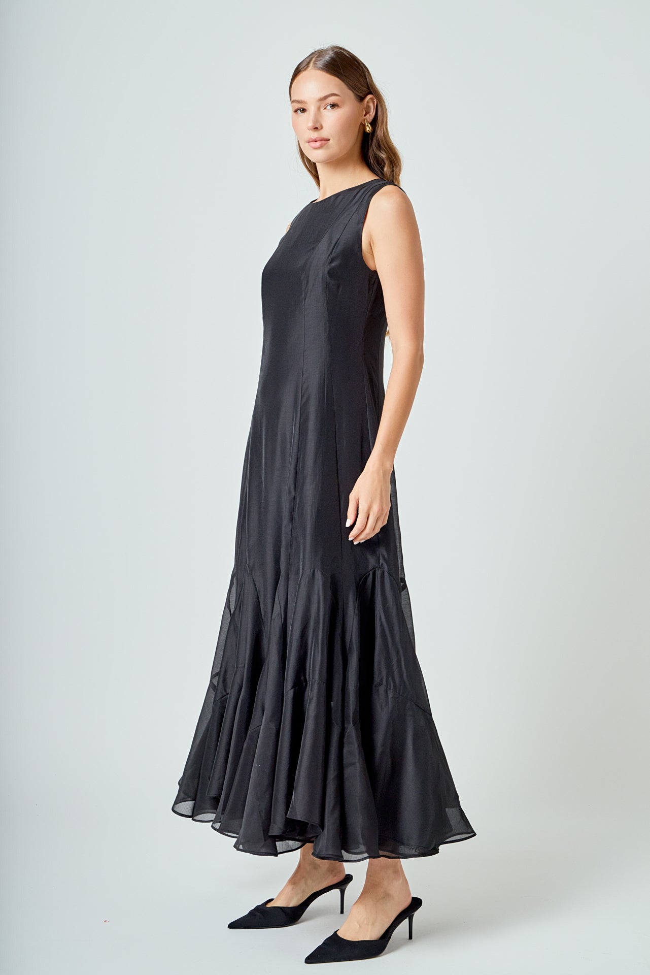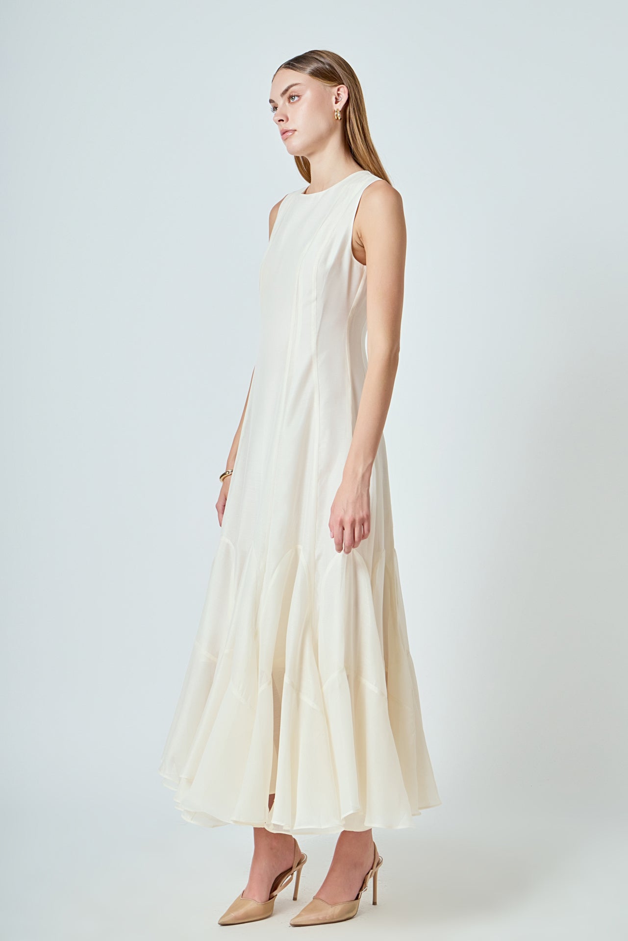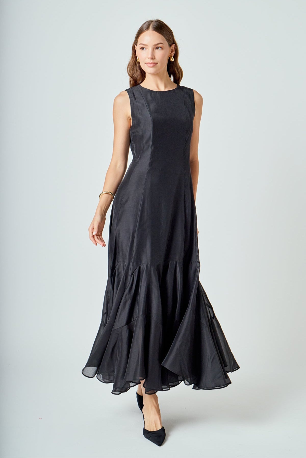 Add a touch of elegance to your wardrobe with our stunning Godet Detail Maxi Dress. Featuring a flattering round neckline and chic sleeveless design, this dress is perfect for any occasion. The godet detailing adds a unique and stylish touch, while the maxi length creates a flowy and sophisticated silhouette. Made from high-quality materials, this dress is comfortable and easy to wear. Whether you're dressing up for a special event or keeping it casual, this dress is a must-have in your collection. Get ready to turn heads and make a statement in our Godet Detail Maxi Dress!
