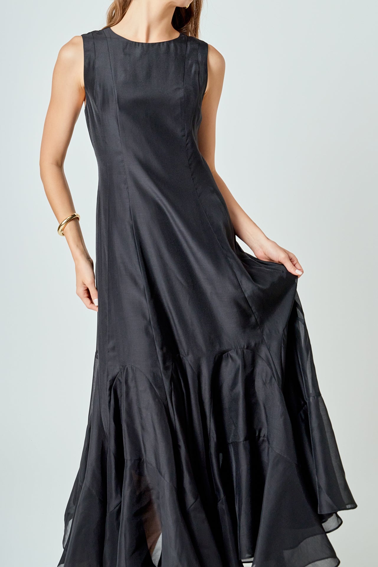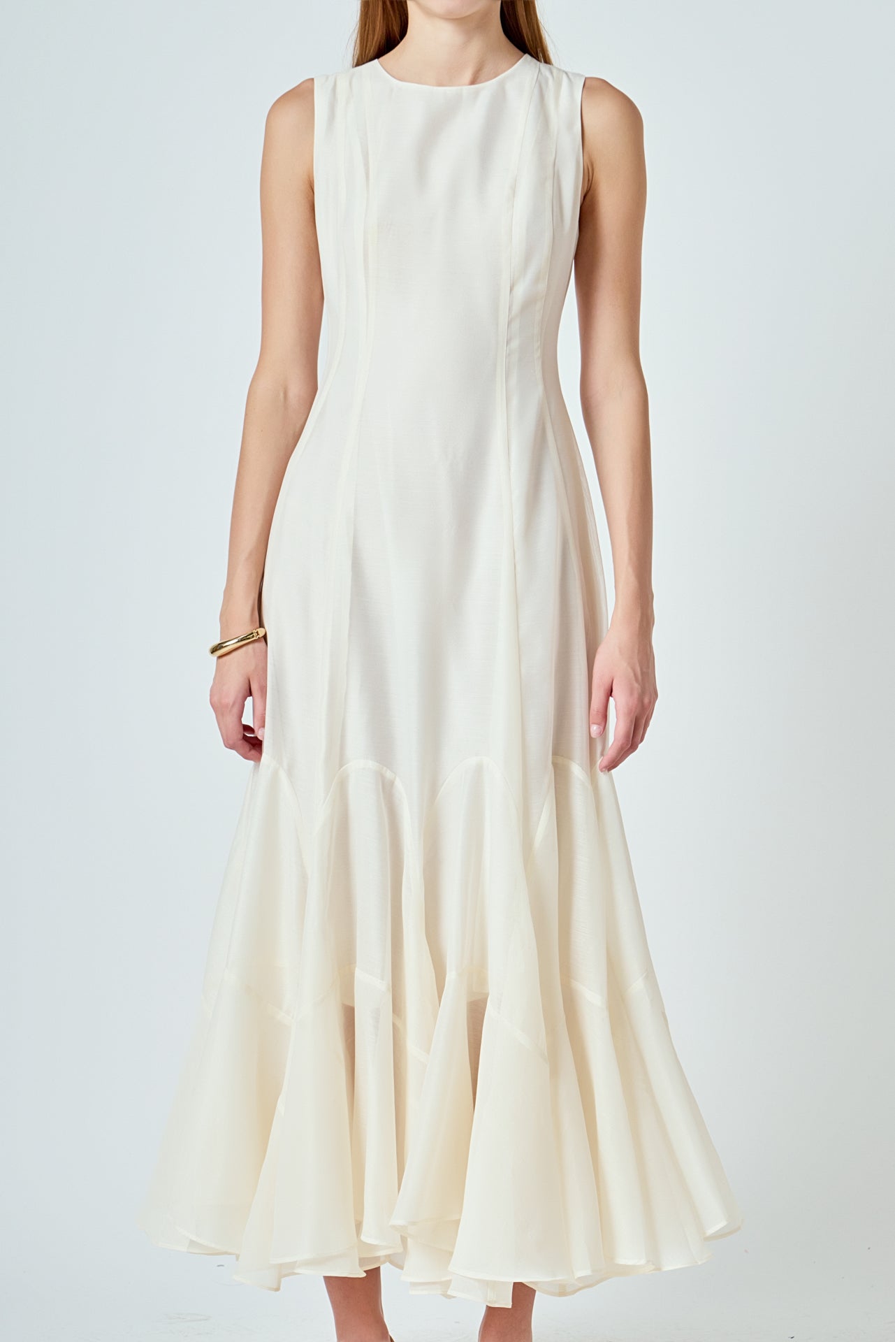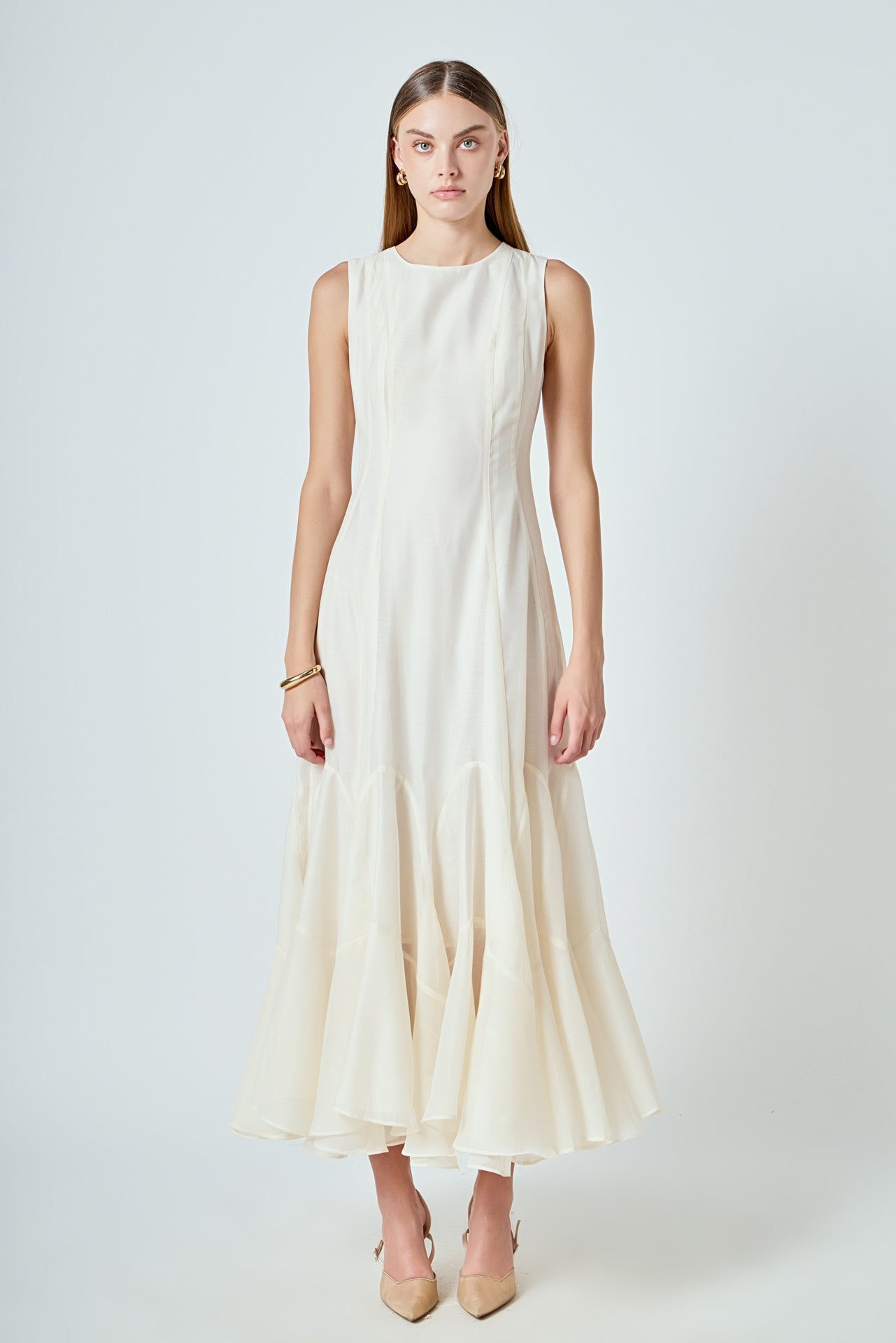 Add a touch of elegance to your wardrobe with our stunning Godet Detail Maxi Dress. Featuring a flattering round neckline and chic sleeveless design, this dress is perfect for any occasion. The godet detailing adds a unique and stylish touch, while the maxi length creates a flowy and sophisticated silhouette. Made from high-quality materials, this dress is comfortable and easy to wear. Whether you're dressing up for a special event or keeping it casual, this dress is a must-have in your collection. Get ready to turn heads and make a statement in our Godet Detail Maxi Dress!