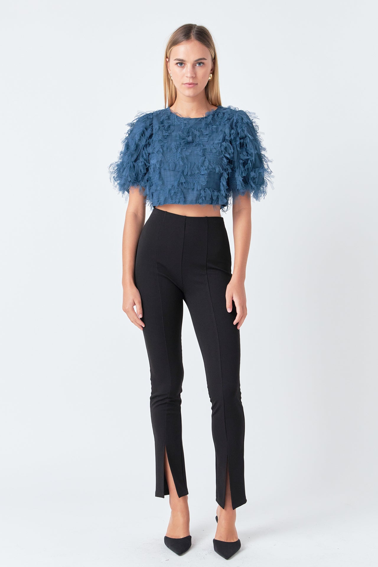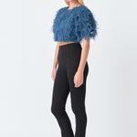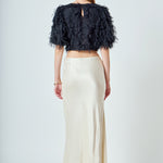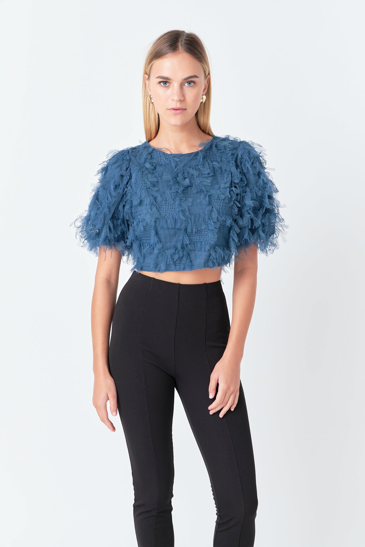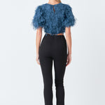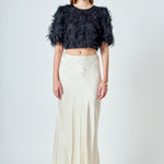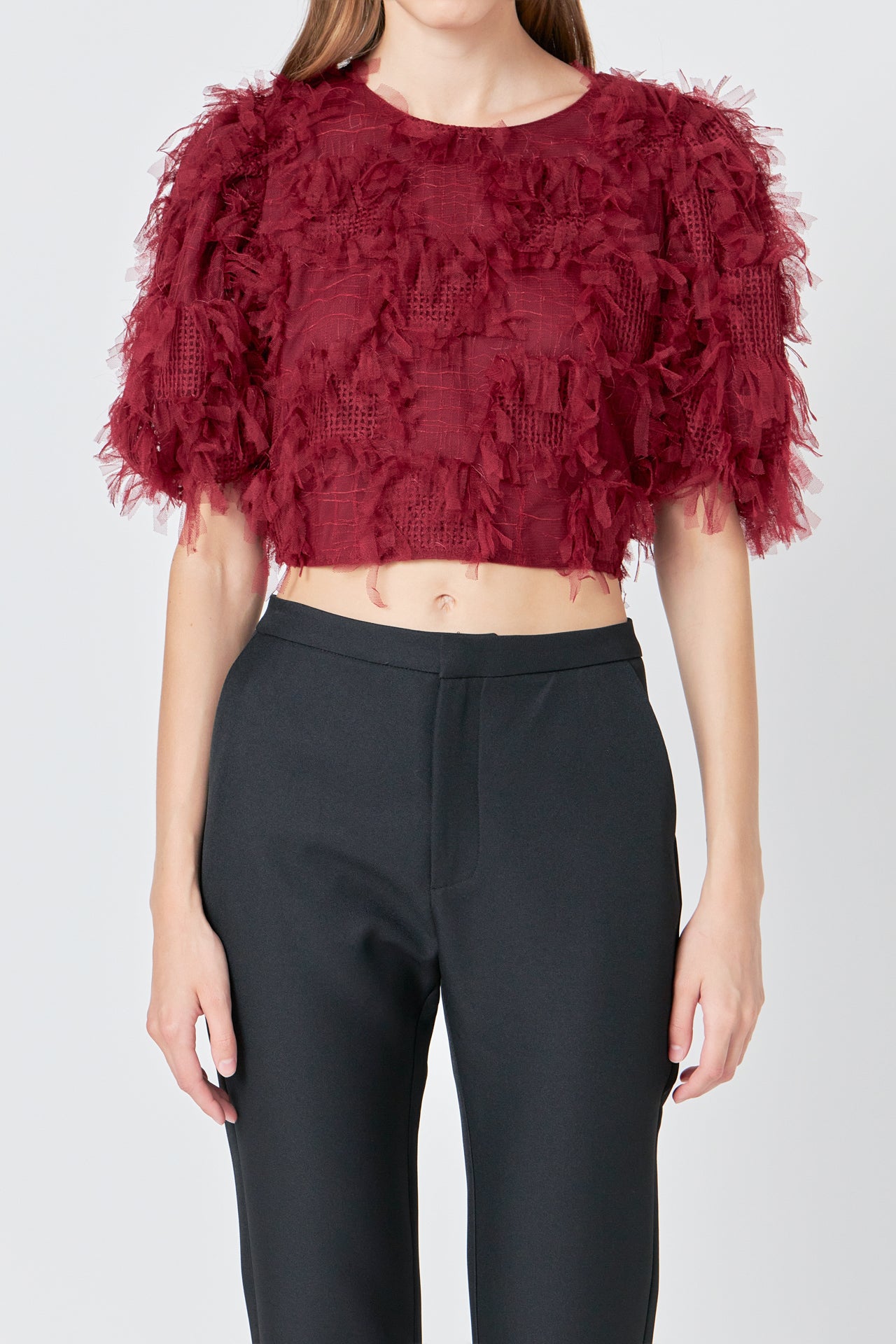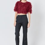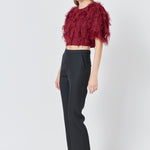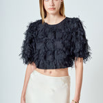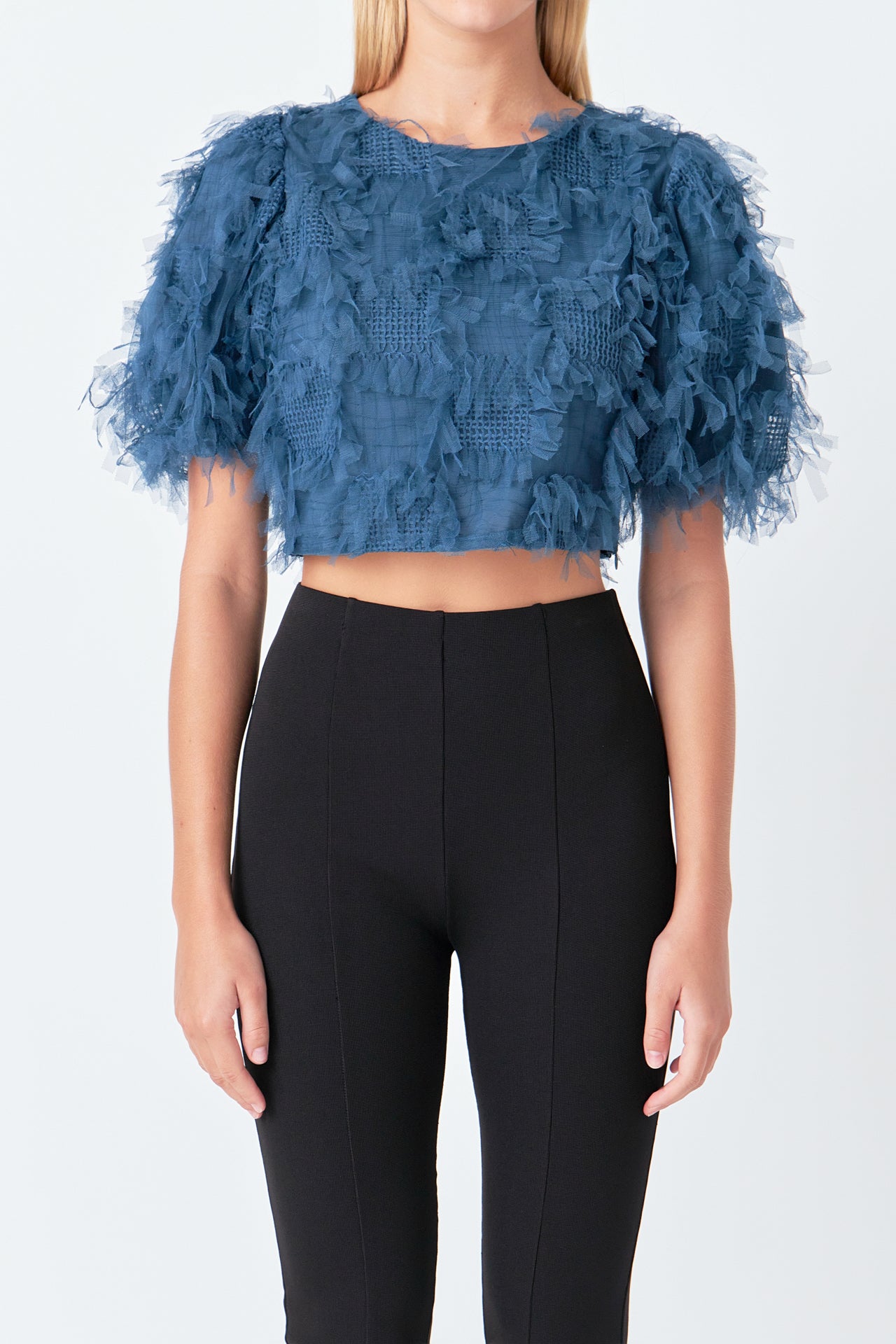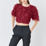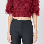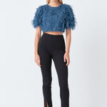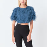 Gridded Mesh Feathered Cropped Top