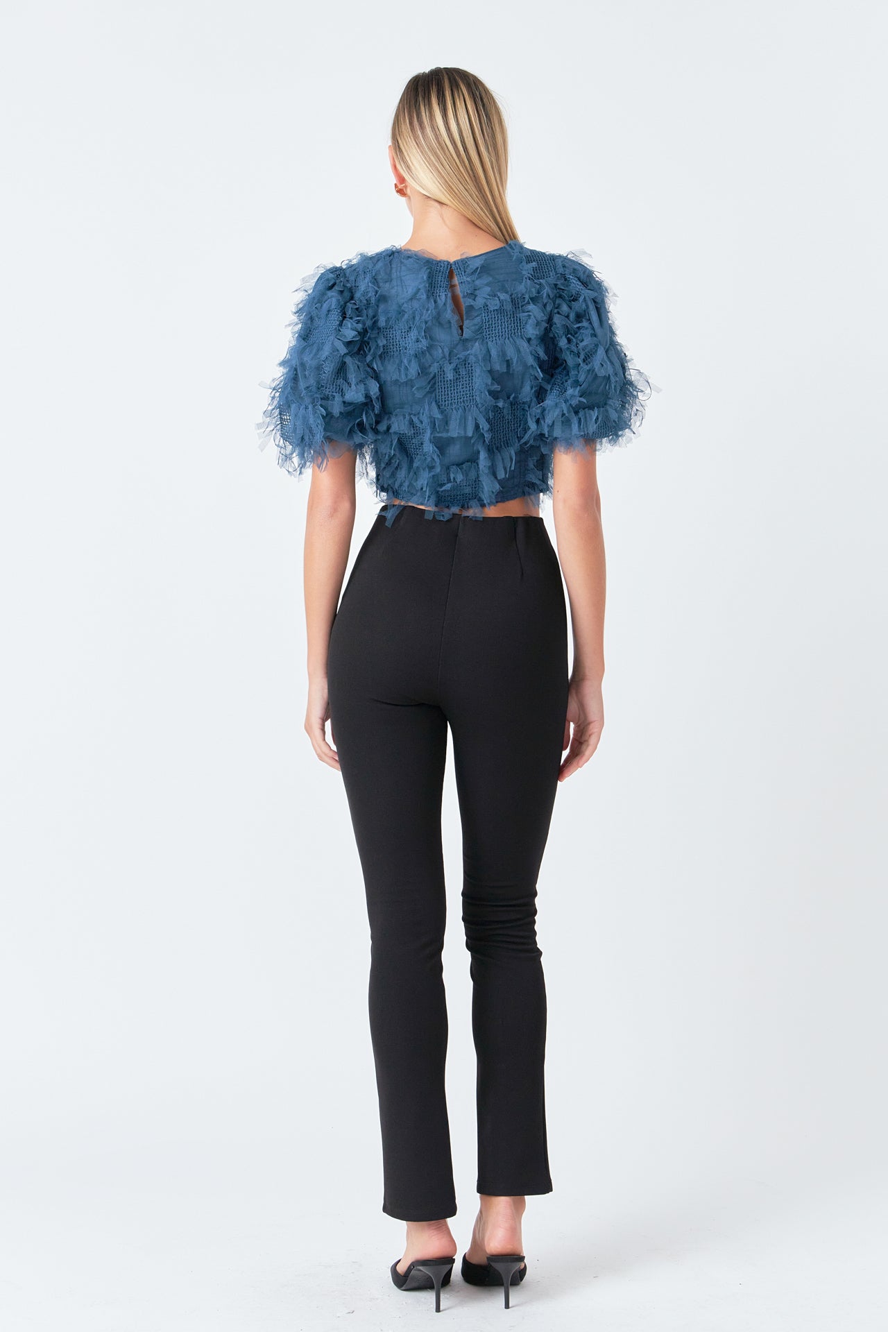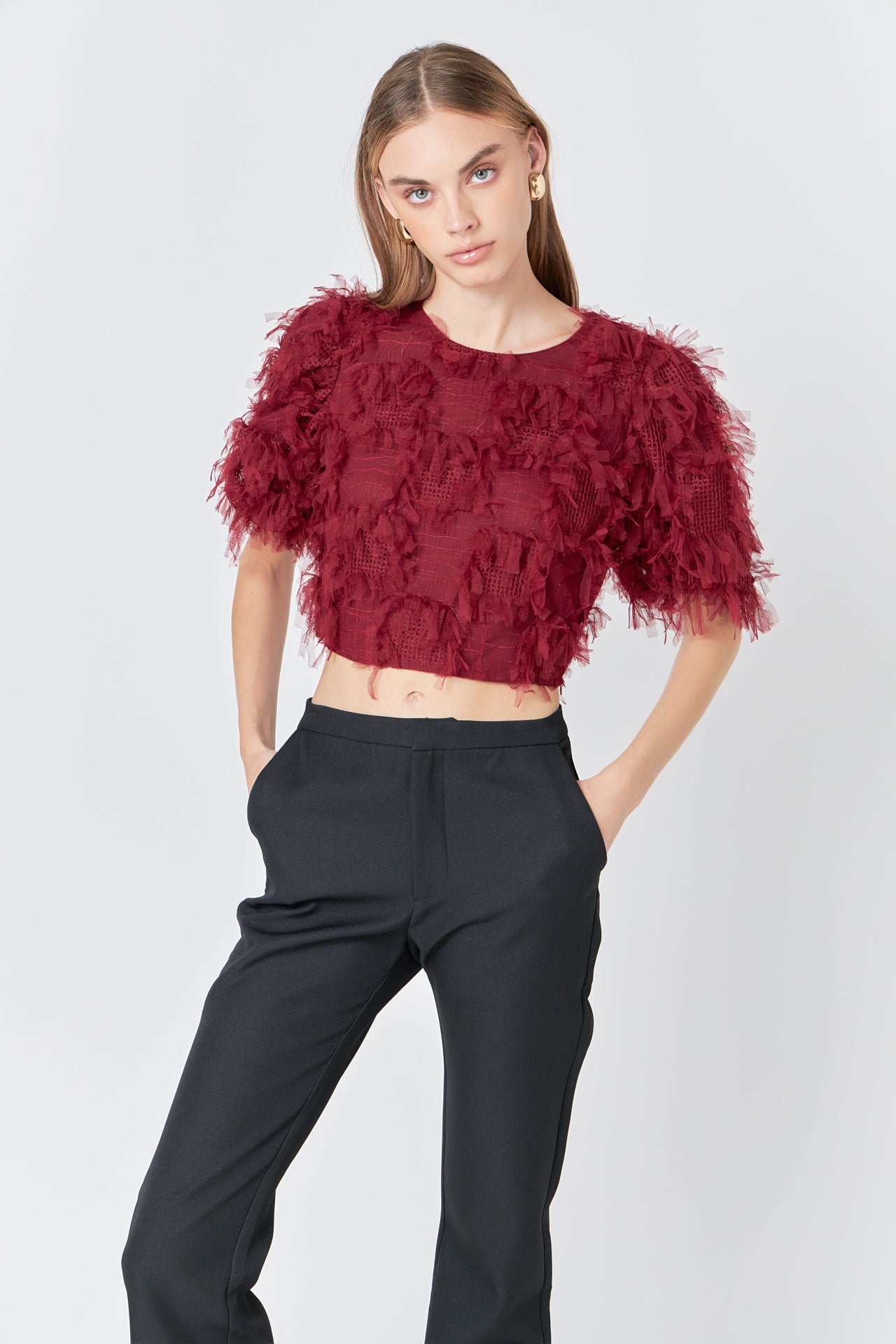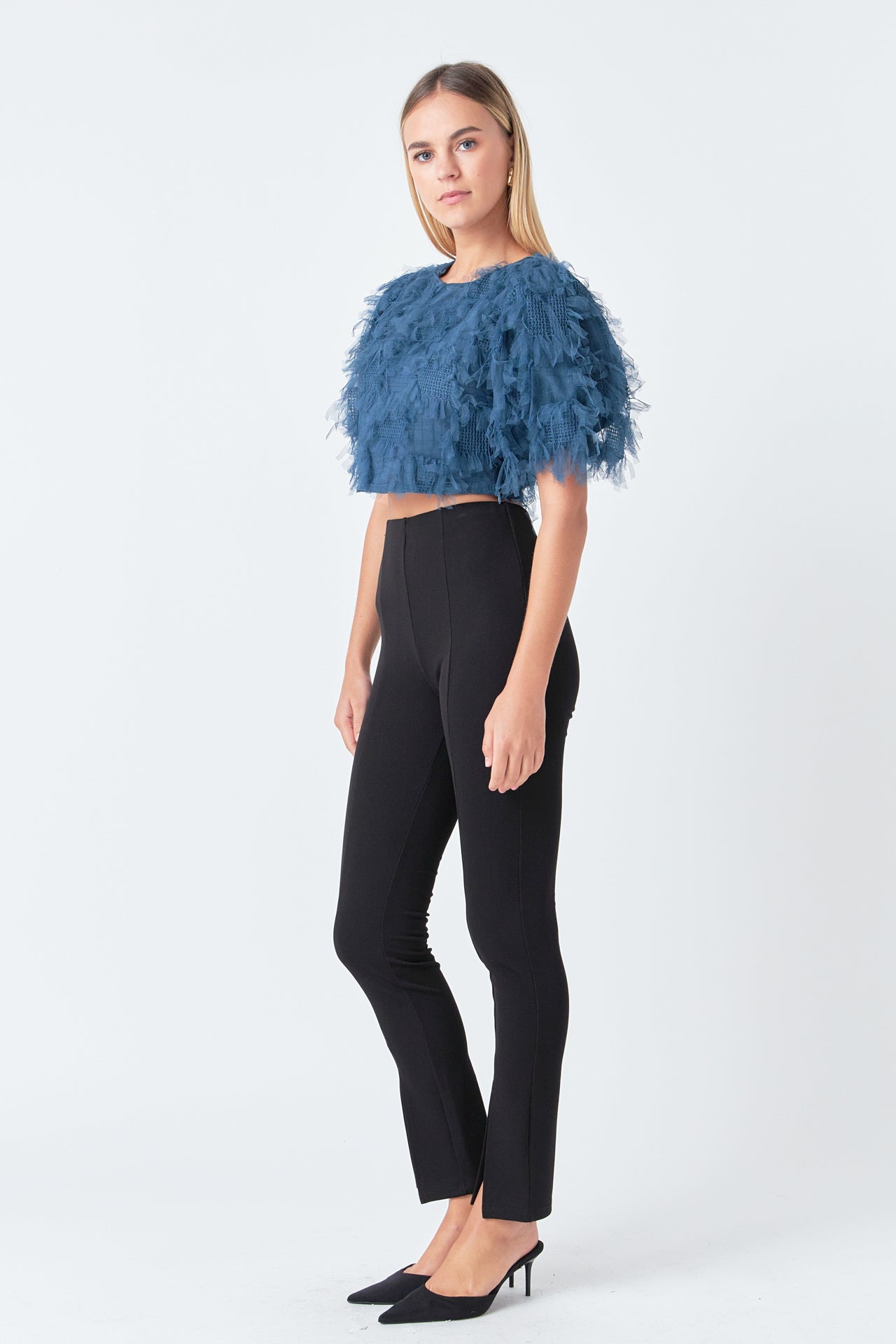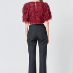 Gridded Mesh Feathered Cropped Top
