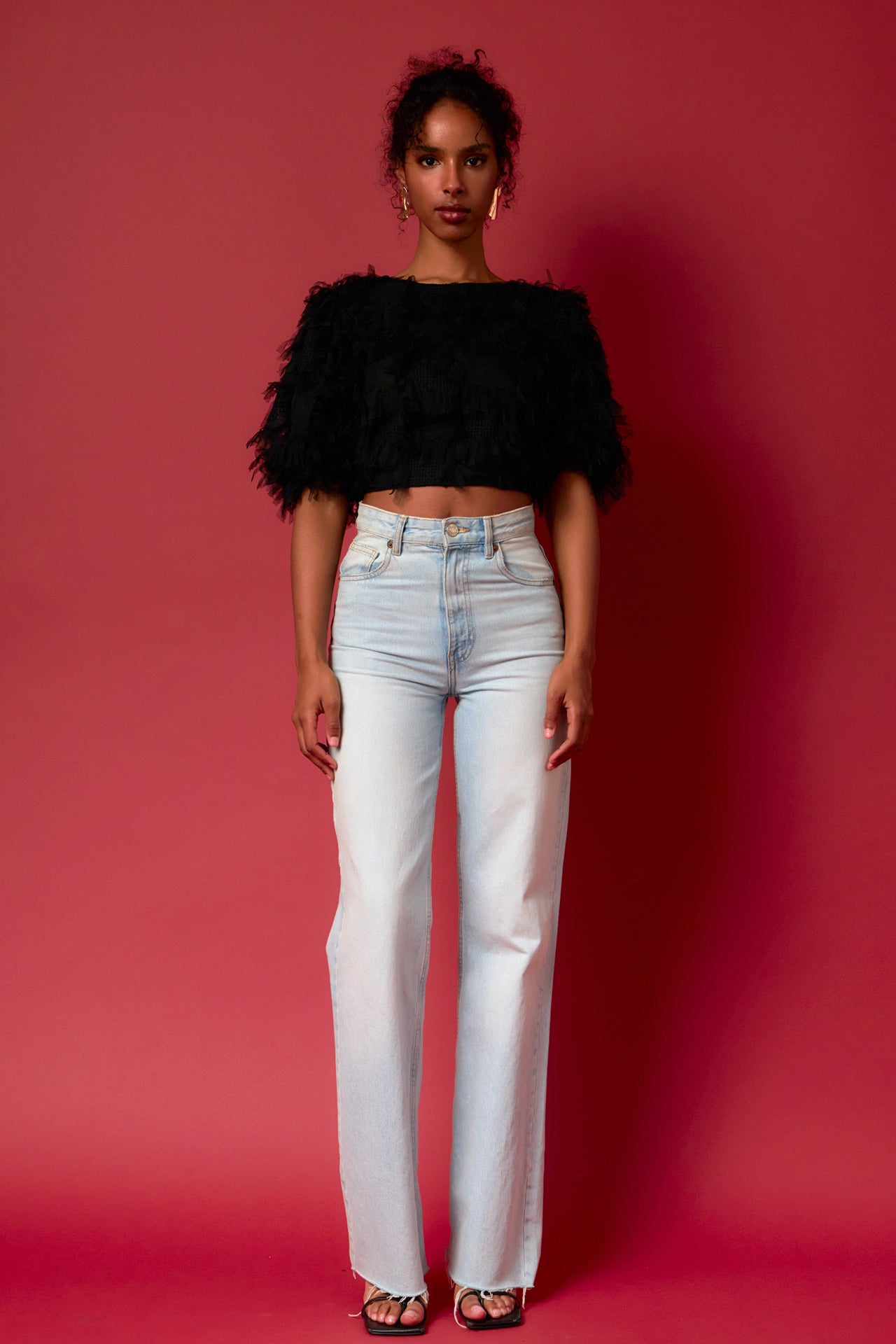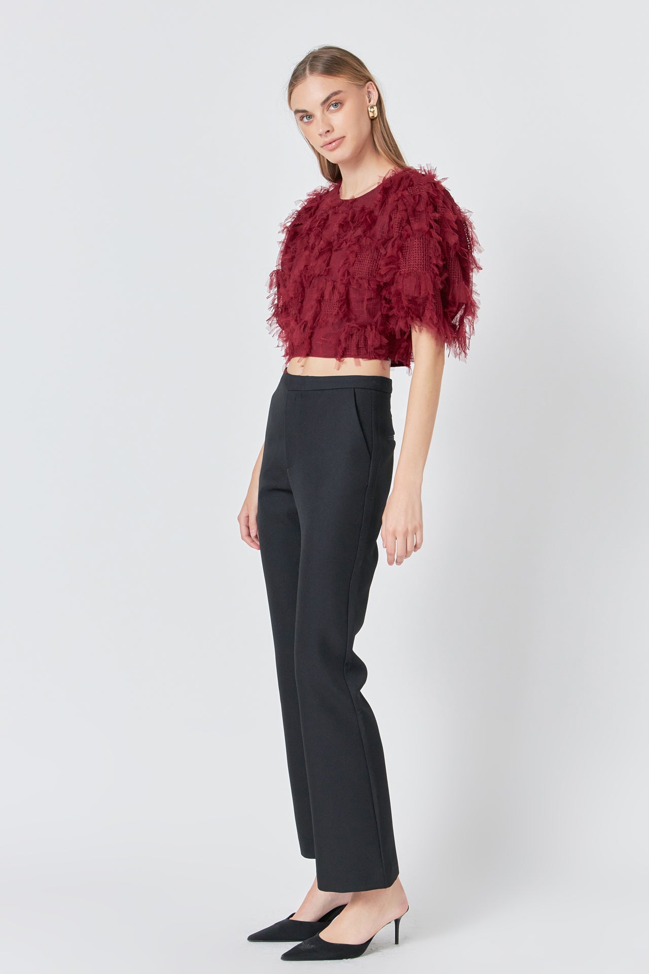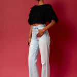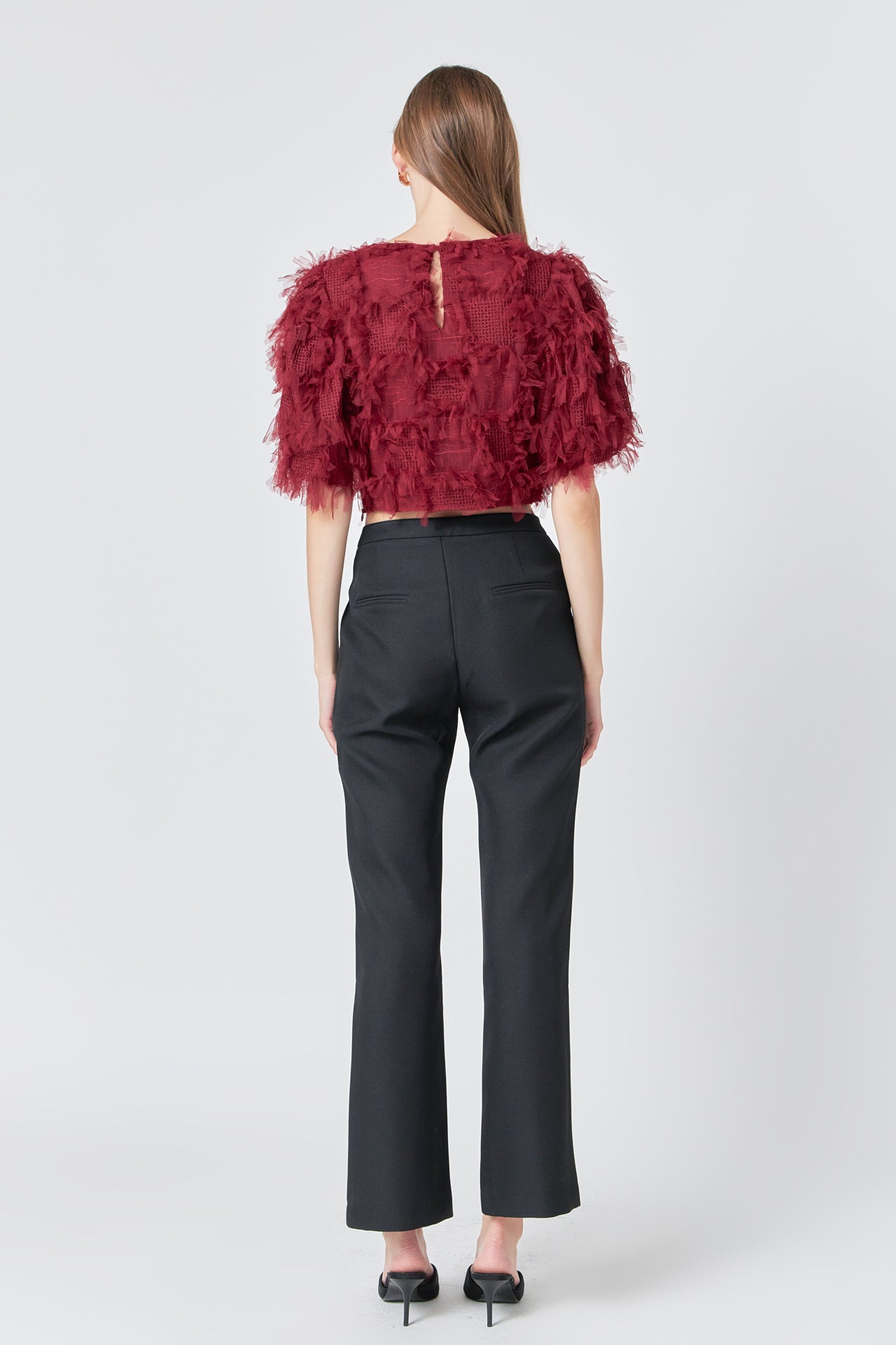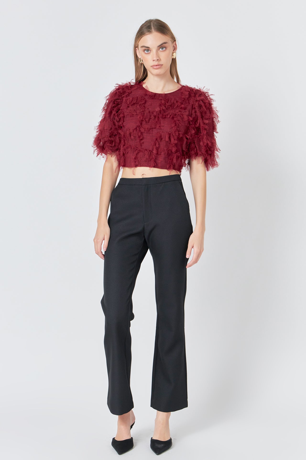 Gridded Mesh Feathered Cropped Top