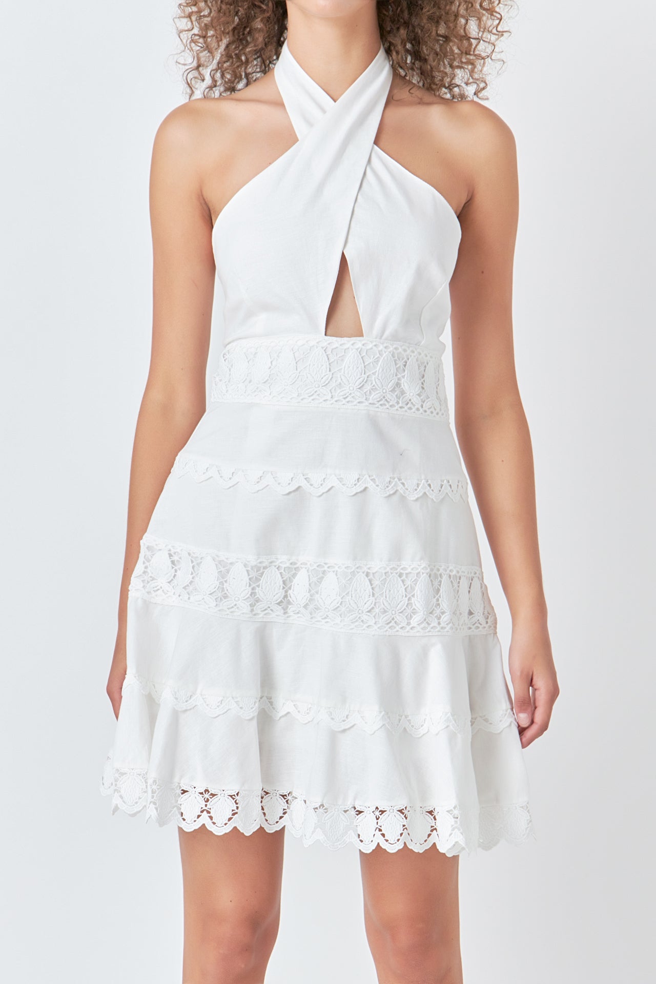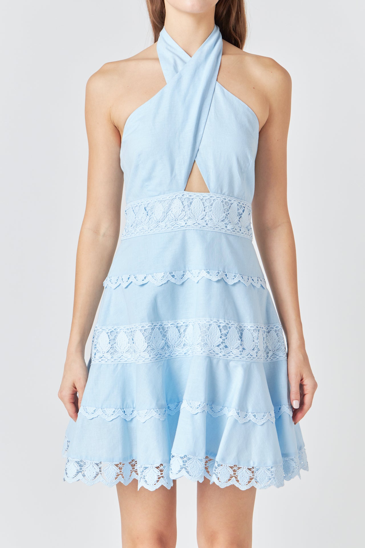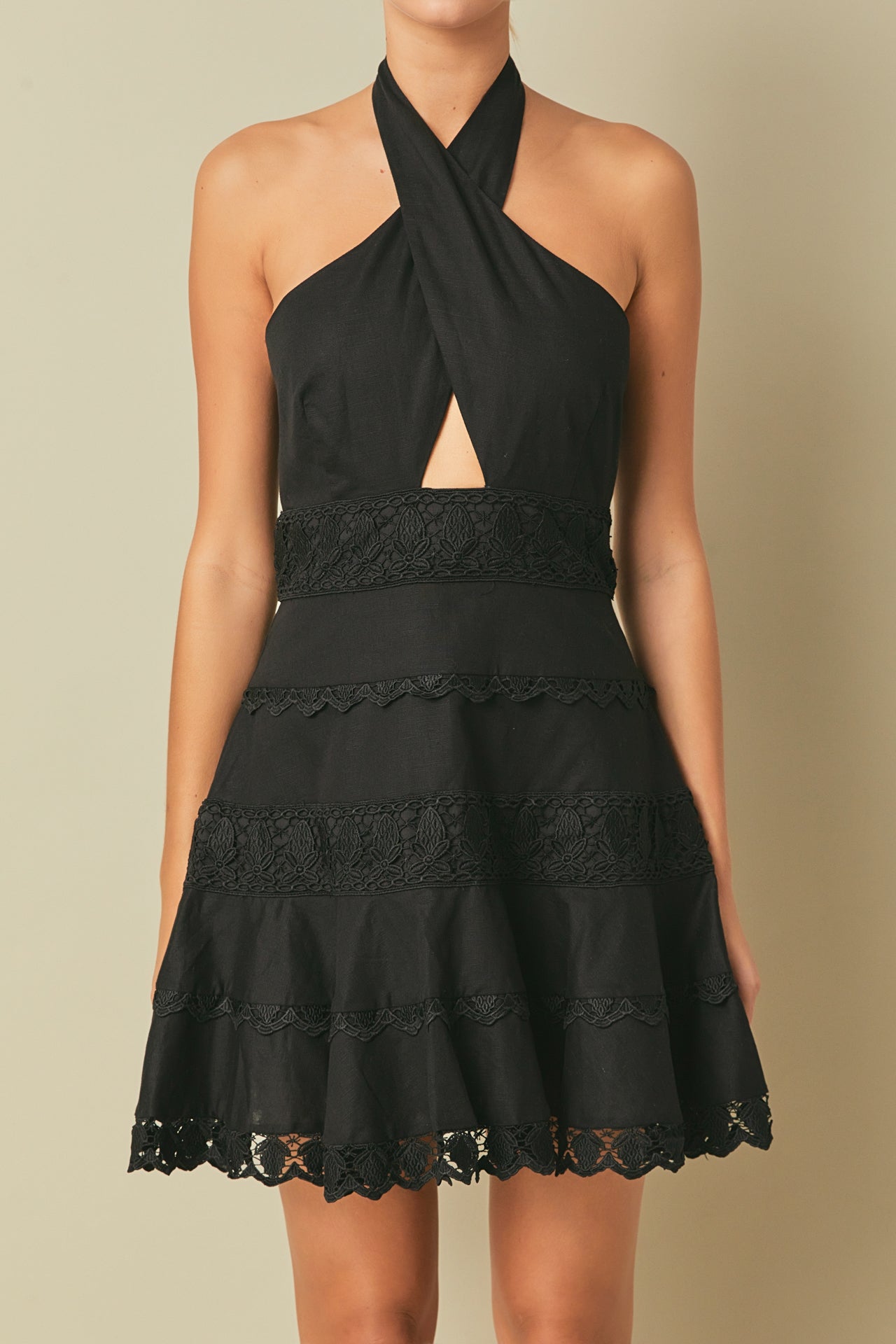 Halter Neck Lace Trim Dress