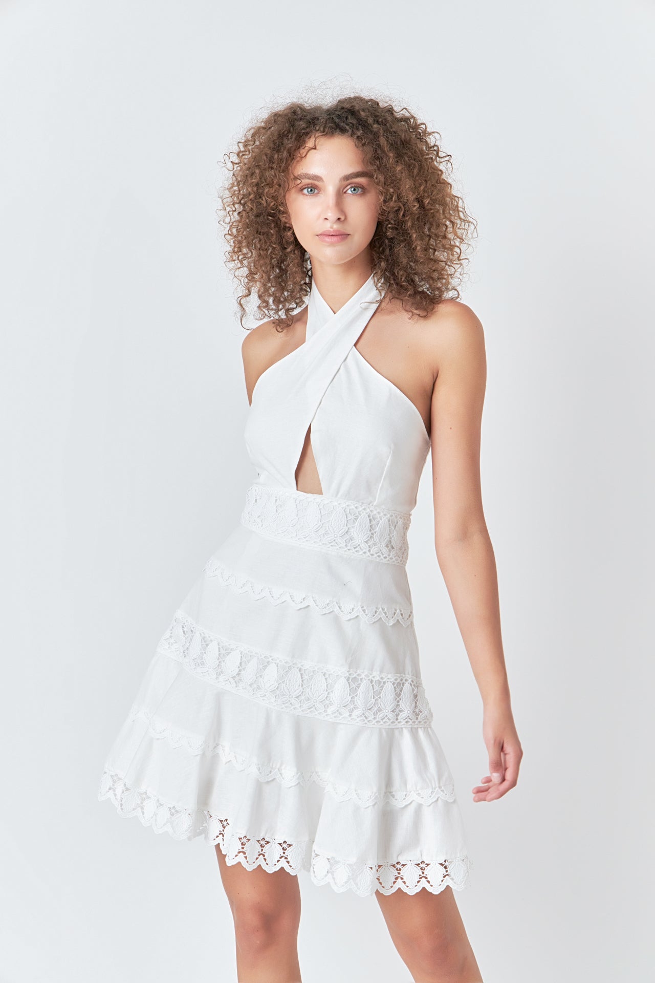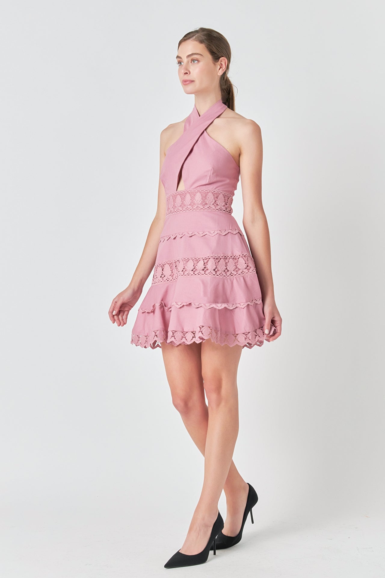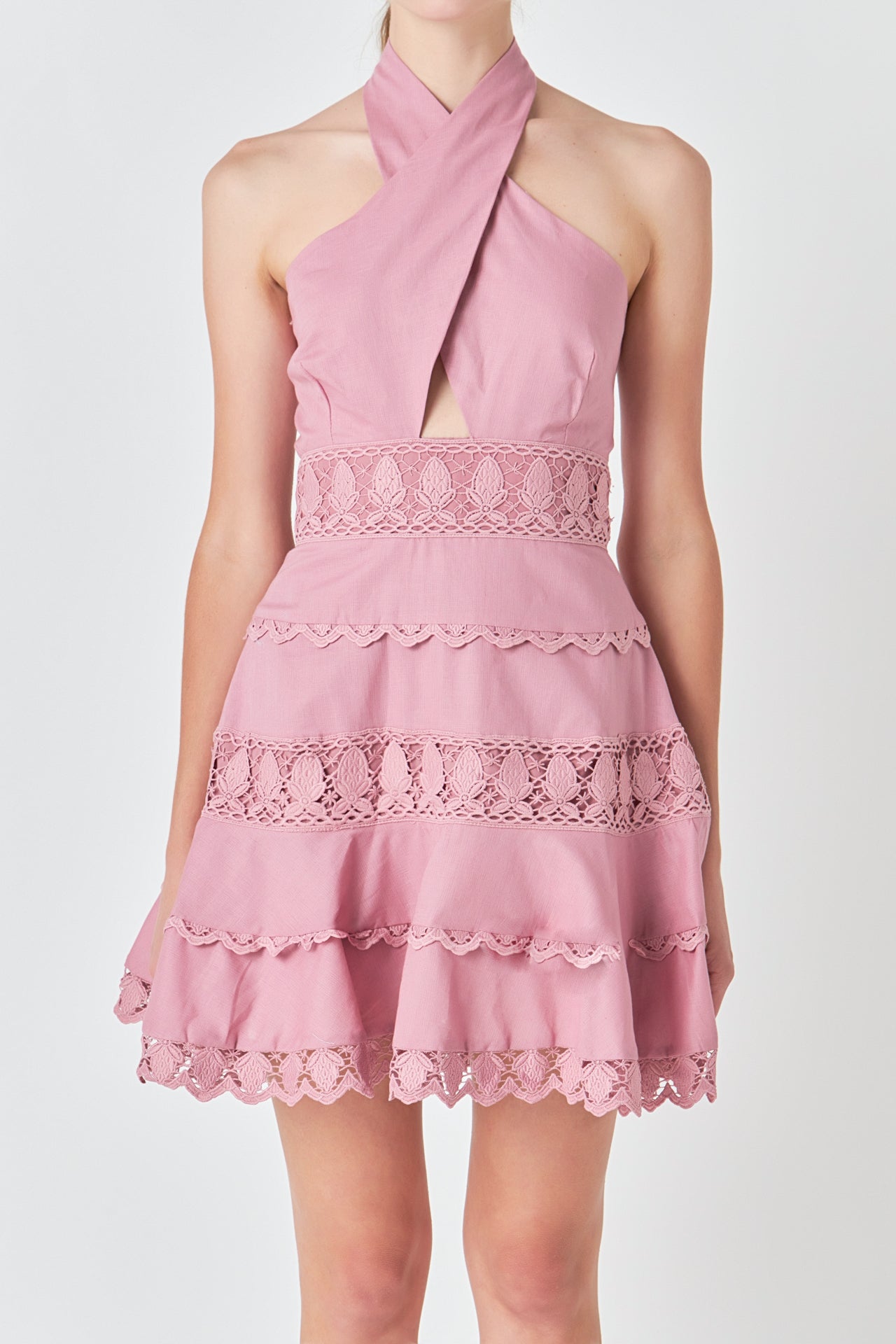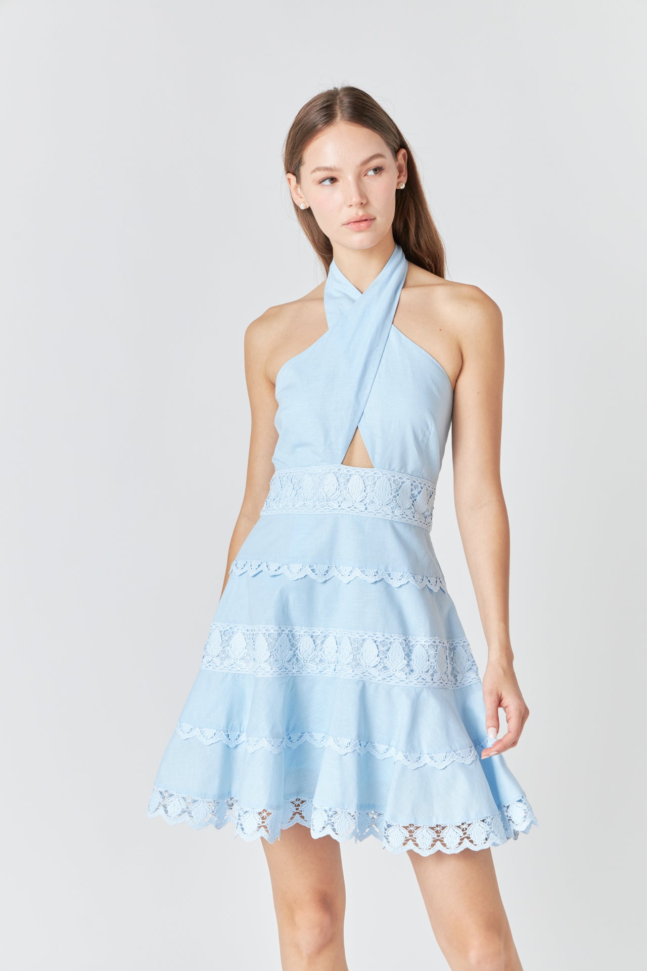 Halter Neck Lace Trim Dress