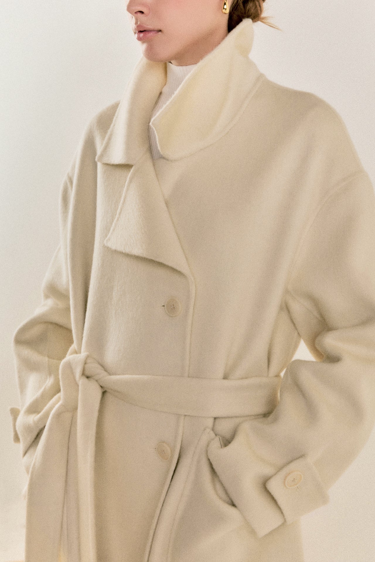 Introducing our stunning Handmade Blend Belted Maxi Coat, the perfect addition to your wardrobe. This must-have piece features a waist belt for a flattering fit, and a stylish collar and lapel for added sophistication. The oversized silhouette adds a chic touch, while the long sleeves keep you warm and comfortable. Made with high-quality materials, this coat is a versatile and timeless addition to any outfit. Elevate your style with our Handmade Blend Belted Maxi Coat and stand out for your impeccable fashion sense. Shop now and be the envy of everyone around you!