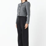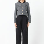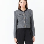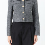 Get ready to break the fashion molds with this Herringbone Contrast Blazer! A round neckline and long sleeves complement the unique herringbone design while contrast details add an edgy yet classy element. This blazer can be dressed up or down for any occasion and will make you stand out from the crowd. It is the perfect choice for a bold and modern look. Get the perfect wardrobe staple for any season and style. Grab yours today and let the compliments pour in!
