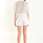 Elevate your summer style with our High-Waisted Shorts with Pockets. The flattering high waist elongates your legs, while the front pockets add both functionality and a chic touch to the design. Made from high-quality fabric, these shorts are perfect for both casual outings and dressier occasions. Hand wash them in cold water for long-lasting wear, and be sure to avoid bleach. With its comfortable fit and stylish details, this pair of shorts is a must-have for any fashion-forward wardrobe. Order now and add some versatility to your style game!