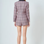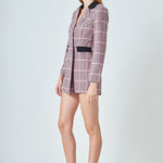 This Houndstooth Contrast Romper is a striking statement piece designed to elevate your wardrobe. Crafted from sequin tweed, it offers a rich texture and subtle shimmer that catches the light beautifully. The timeless double-breasted silhouette creates a tailored, polished look, while the contrast skinny lapels add a modern edge. Front pocket flaps lend a structured detail, balancing elegance with functionality. Perfect for special occasions, this romper transitions seamlessly from evening events to upscale gatherings, ensuring you stand out in sophisticated style. Pair it with sleek heels and minimal jewelry for a refined, head-turning ensemble.
