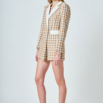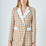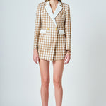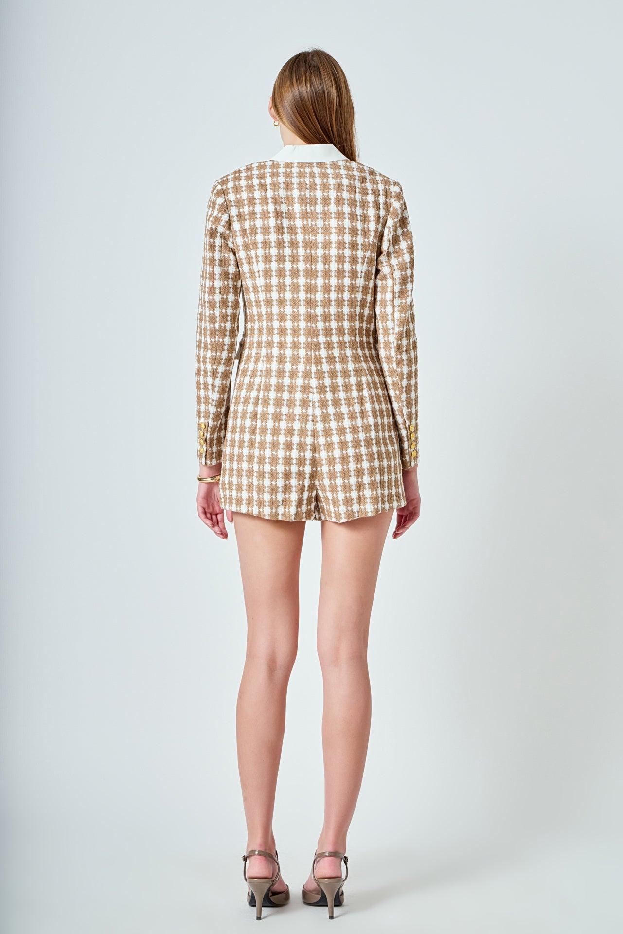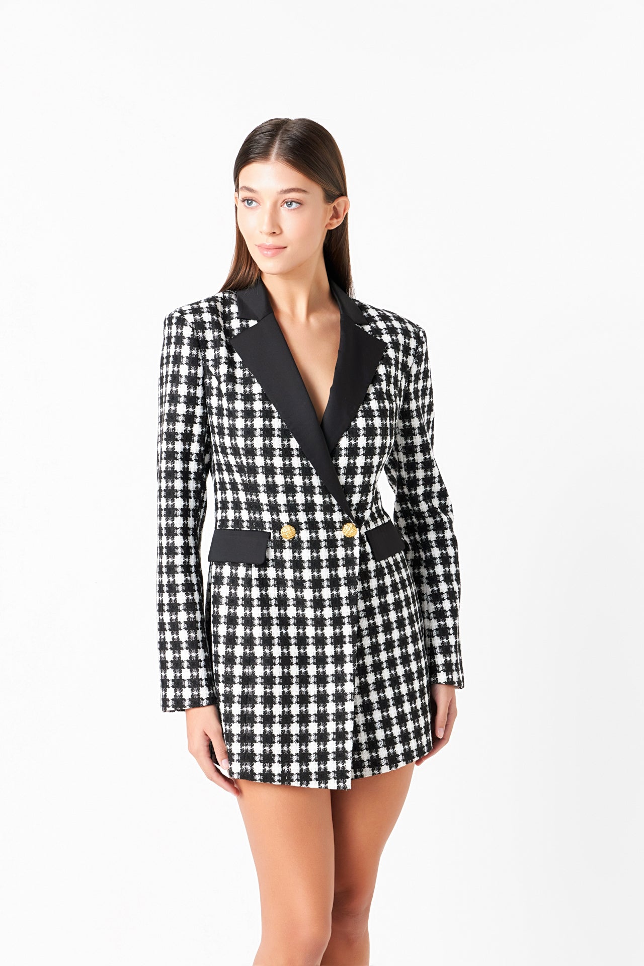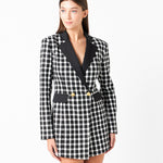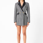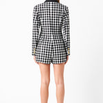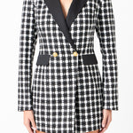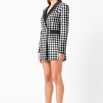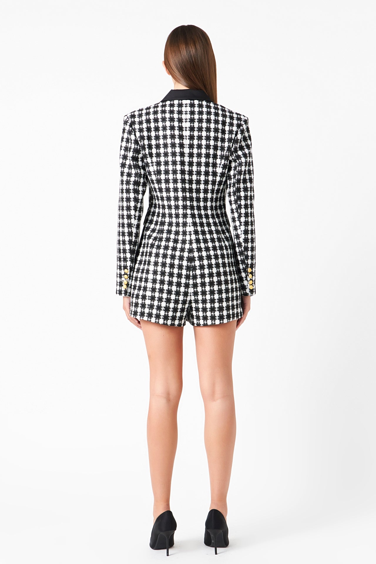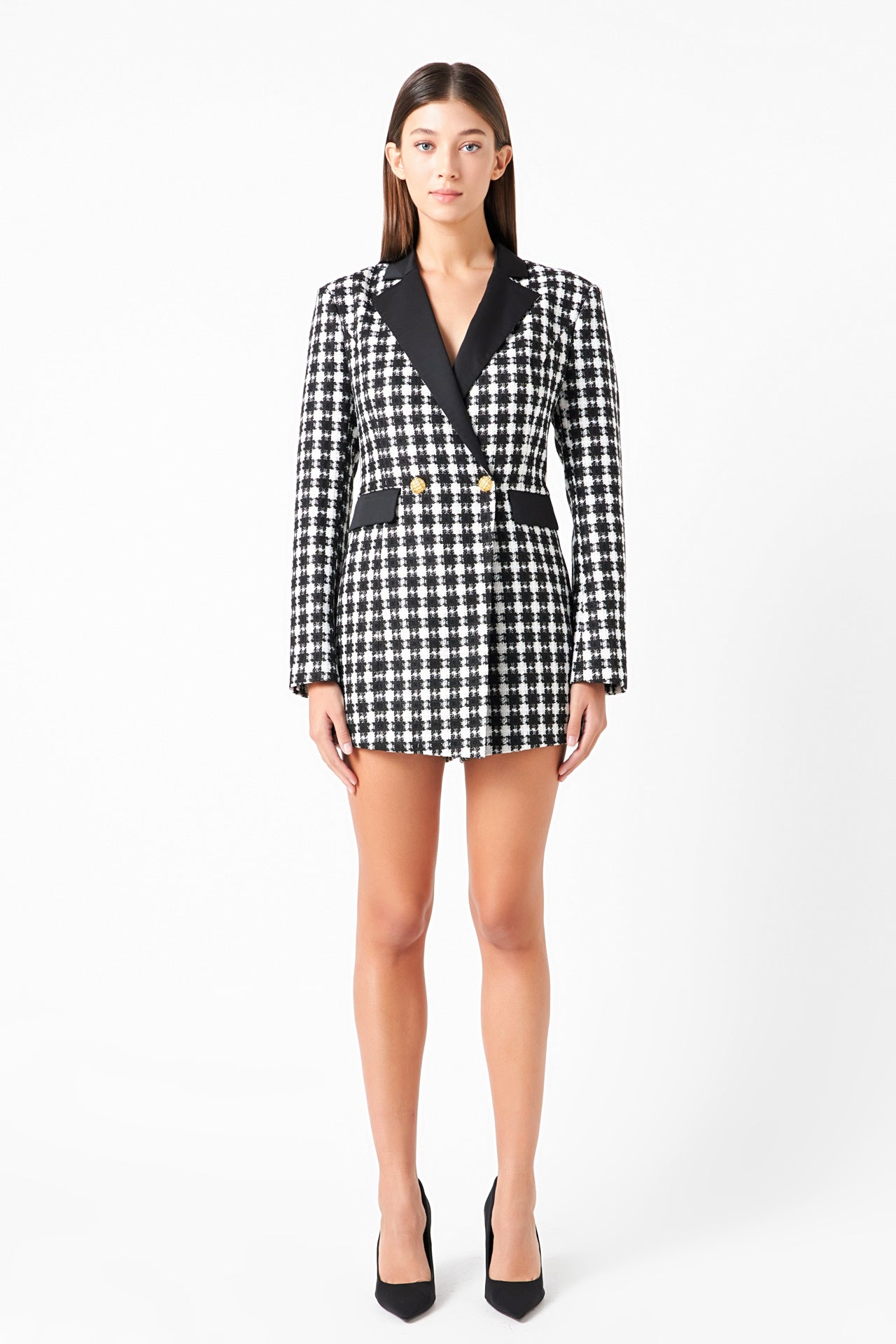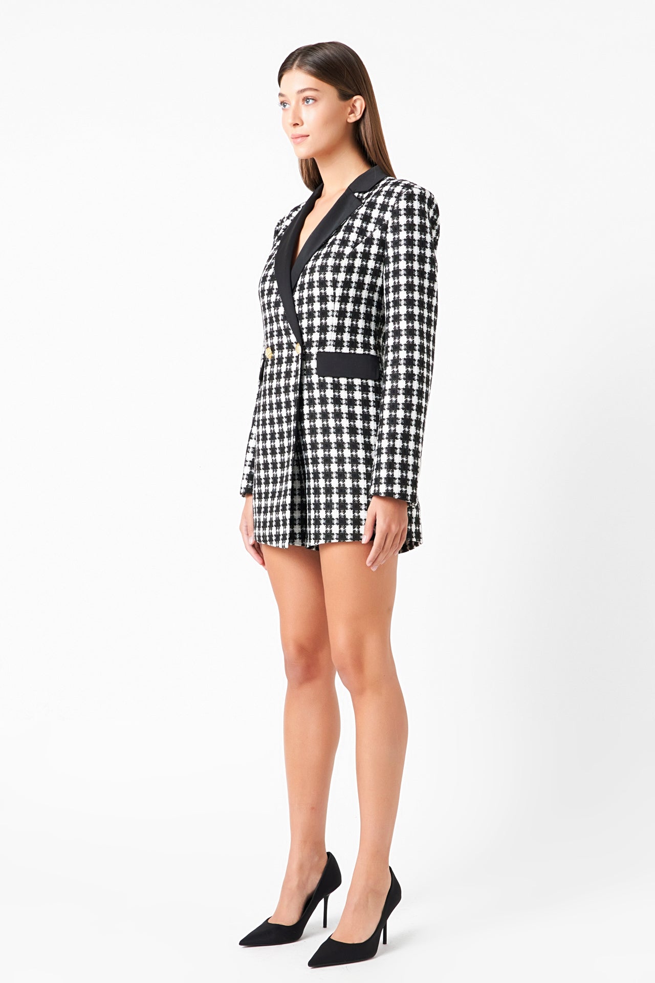 Look refined in the Houndstooth Blazer Romper - the perfect mix between work and play! Our romper features a double breast button a solid lapel and long sleeves. The unique black and white houndstooth pattern adds just the right amount of sophistication and panache to your look. Upgrade your closet with this must-have piece and be sure to stand out from the crowd!