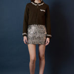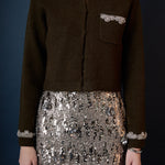 Elevate your everyday look with the Jewel Cardigan. Featuring a classic round neckline and long sleeves, this soft, ribbed knit piece is finished with a sparkling jewel trim that instantly adds a touch of glamour. Lightweight yet cozy, it's perfect for layering over your favorite tops, whether you're heading out for brunch or relaxing at home in style.