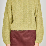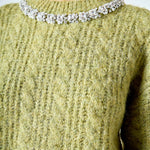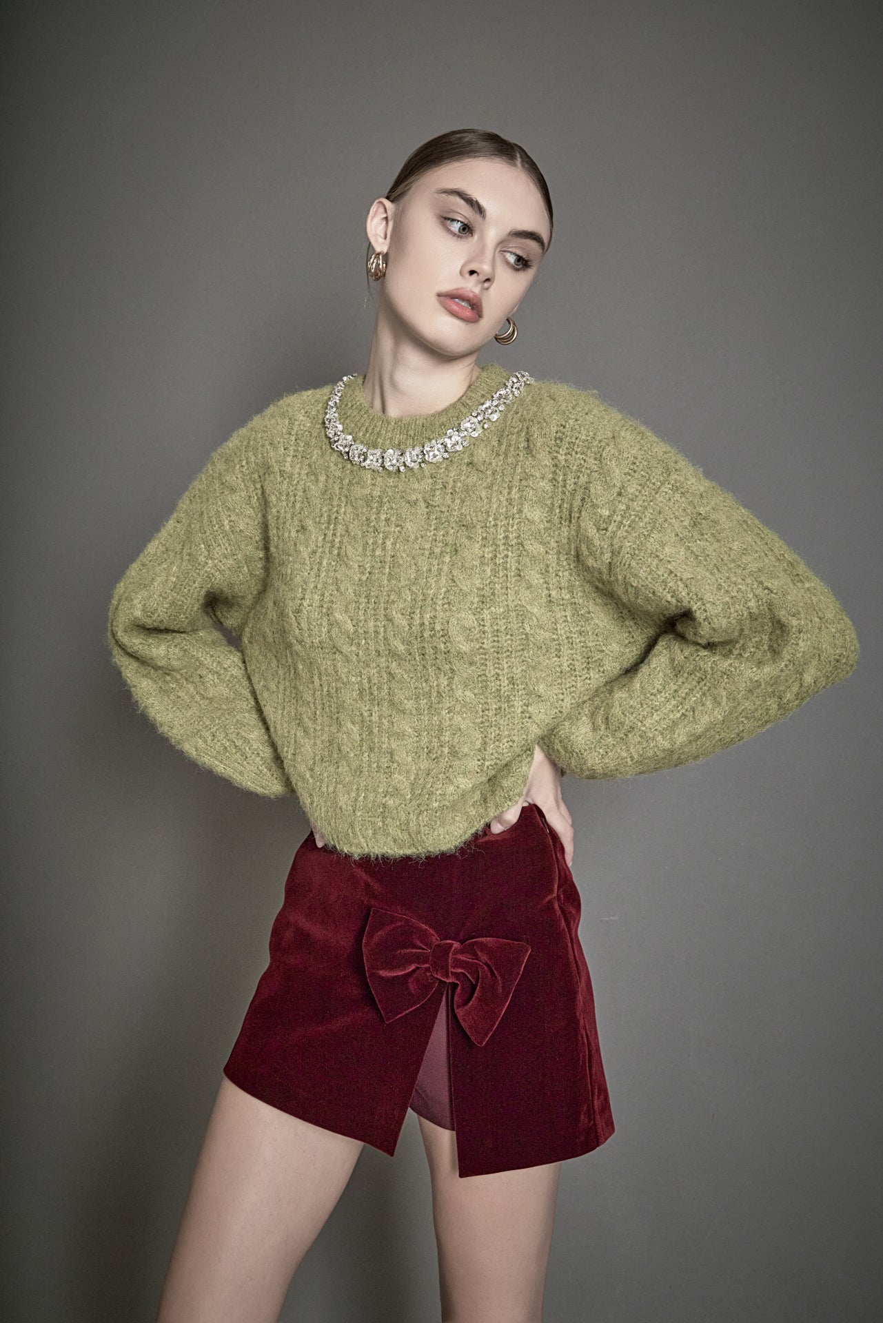 Jewel Embroidered Fuzzy Cable Knit Chunky Sweater