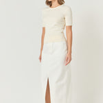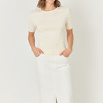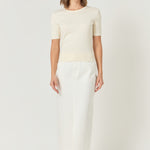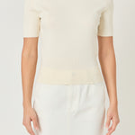 Upgrade your knitwear collection with this stylish Jewel Trim Half Sleeve Top. It features a solid knit with a fitted silhouette and round neckline and short sleeves with alluring jewel trim for a unique touch. Its half sleeve length strikes the perfect balance between comfort and style. This versatile top can be easily matched with your favorite jeans and sneakers for a trend-setting look. Get this top today and enjoy the spotlight!