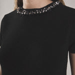 Our Jewel Trim Knit Short Sleeve Top brings subtle shine to your everyday outfits. The soft knit feels cozy against the skin, while the round neckline is finished with sparkling jewel accents for a refined detail. Short sleeves and a slightly relaxed fit make it easy to style on its own or layered under a jacket. Perfect for casual weekends or a polished work look, this top is simple, stylish, and versatile enough to become a wardrobe go-to.