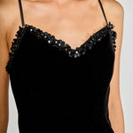 Our Jewel Trim Velvet Mini Bubble Dress pairs luxe velvet with sparkling jewel accents for a chic, standout look. The sweetheart neckline and mini bubble silhouette add playful charm, while the side zipper ensures a smooth fit. Perfect for parties or special occasions, this dress blends playful volume with luxe detailing for a standout look.
