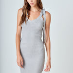 This stylish and versatile Knit Bow Bodycon Mini Dress offers an eye-catching look for any night out or special occasion. It features an alluring V neck line with a flattering bodycon cut and boasts an extra bit of personality with its stylish contrast straps and bow tie on the shoulders. Crafted from a comfortable knit fabric this dress is perfect to show off your curves and make an impression. Buy now and look fabulous in this unique piece.