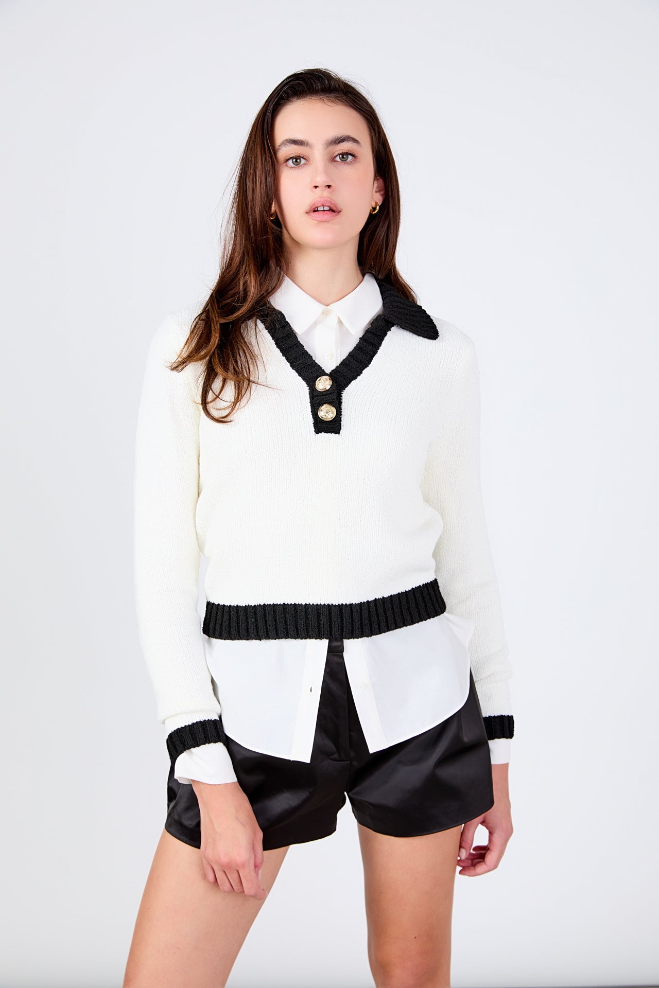 Get ready to snuggle up in style with our Knit Collared Contrast Sweater. Made from soft cozy knit fabric this sweater is perfect for chilly days. The contrasting collar adds a touch of sophistication while the short placket adds a modern twist. Whether you're heading to the office or a casual weekend lunch this sweater will keep you looking effortlessly chic. Don't settle for just any sweater choose our Knit Collared Contrast Sweater for a trendy and comfortable look. Shop now and stand out from the crowd.
