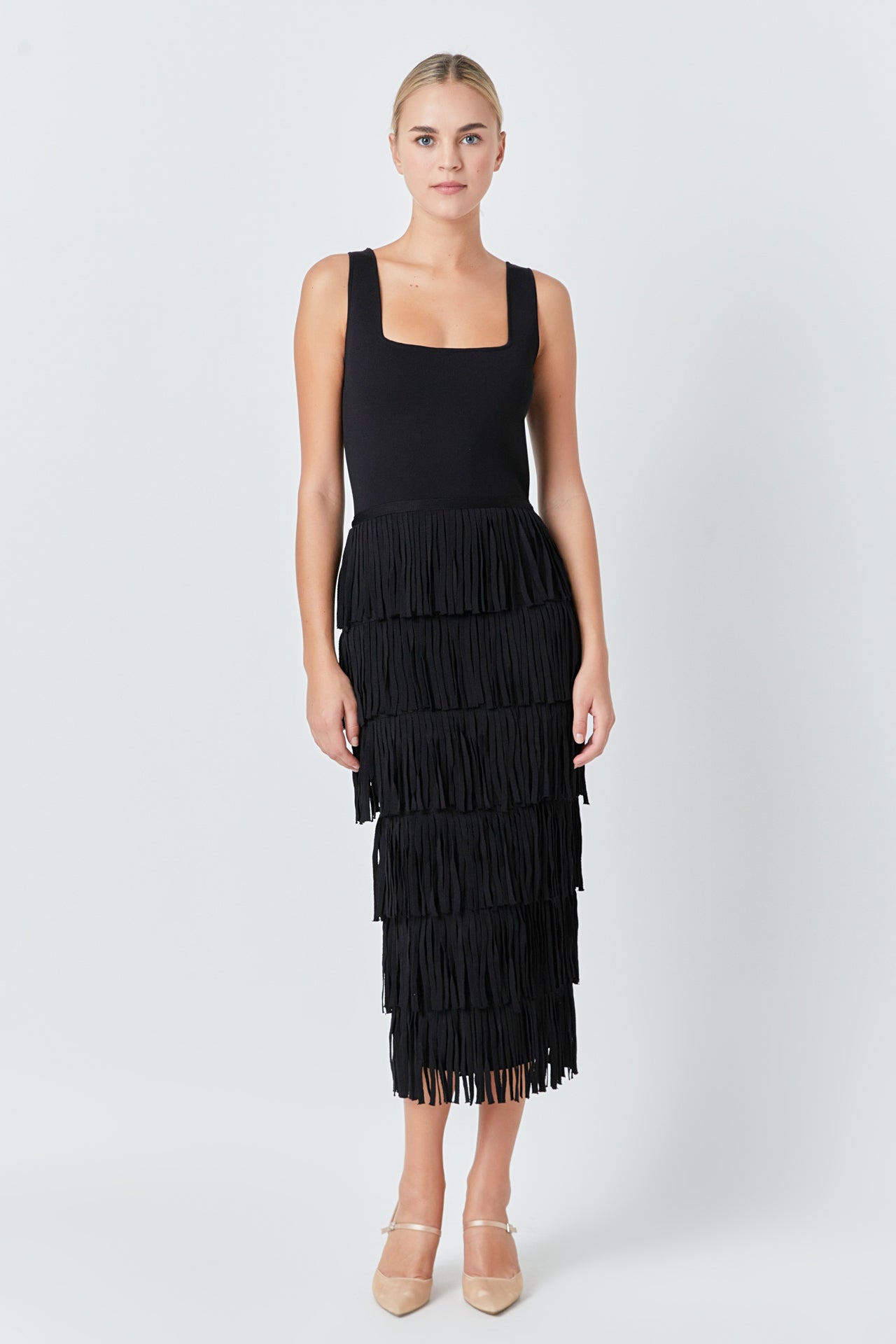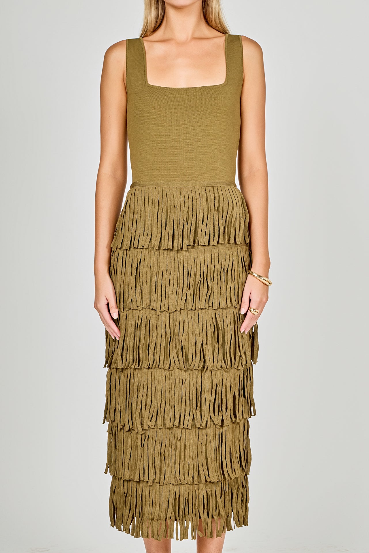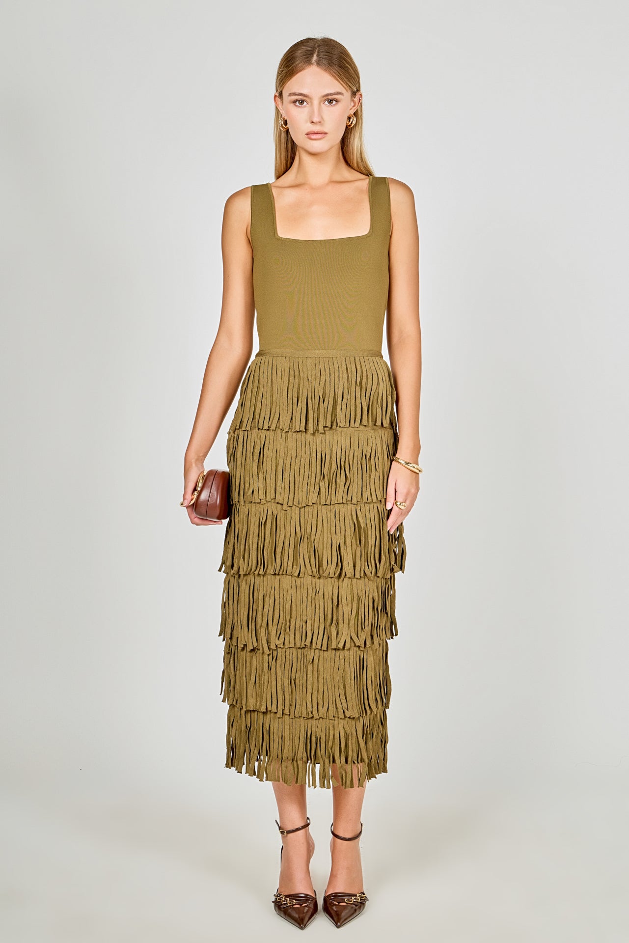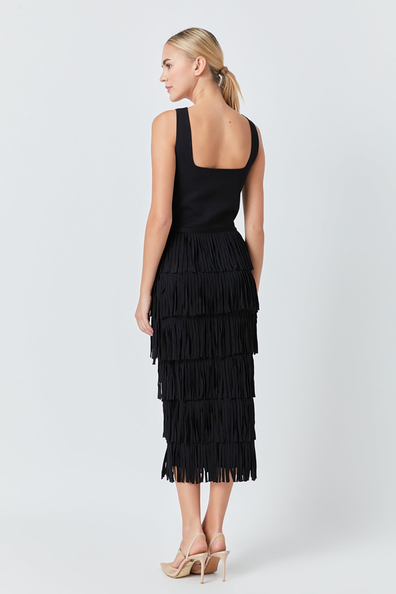 This beautiful Knit Fringe Long Dress is perfect for a special occasion. In a figure-flattering knit fabric, it features a Square neckline, a Tiered fringe skirt, and a concealed side zipper. This girlie dress stands out with its unique look, so you will be sure to get noticed. The added fringe is the perfect detail to make the dress extra special. Shop now, and you'll be ready for any event.