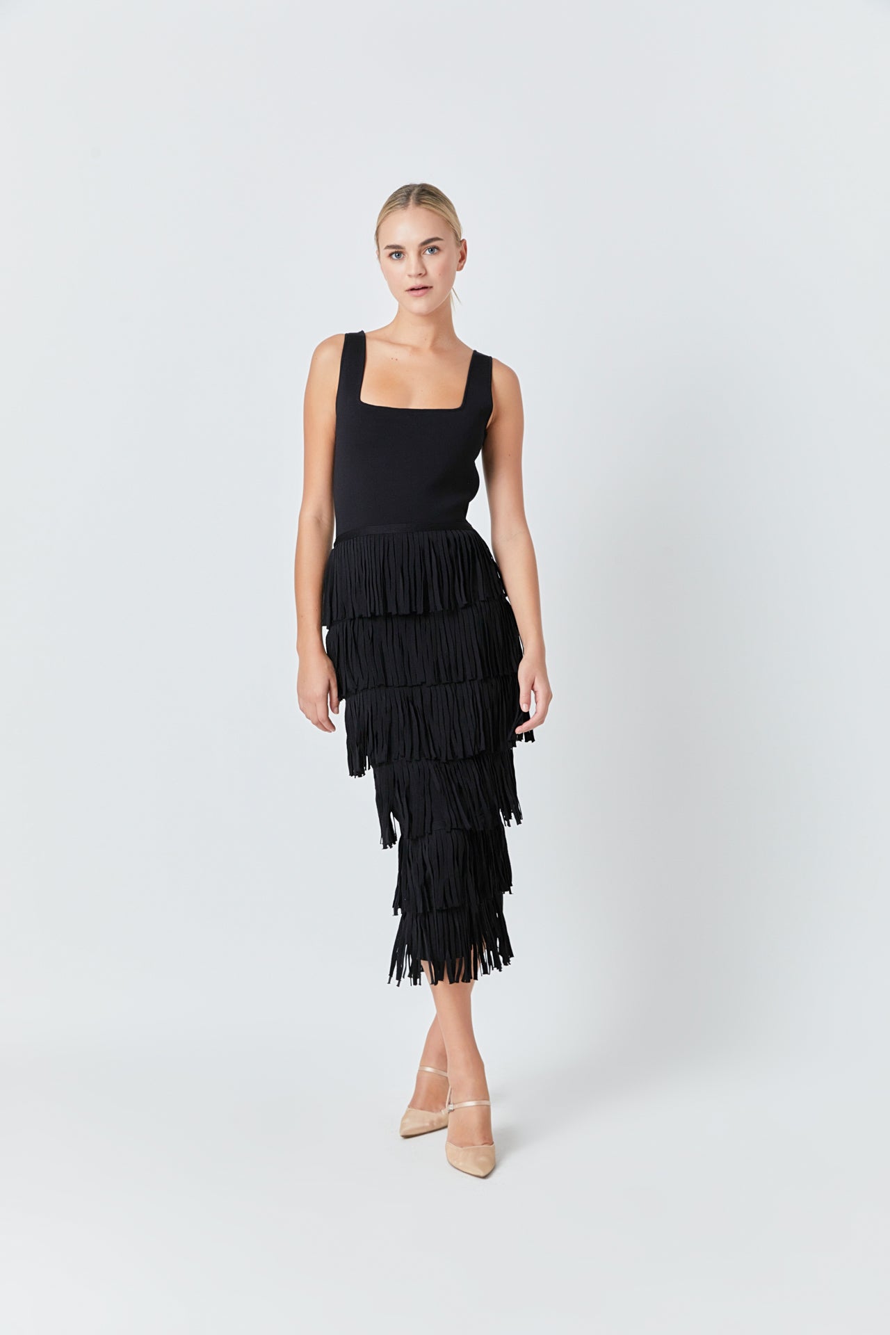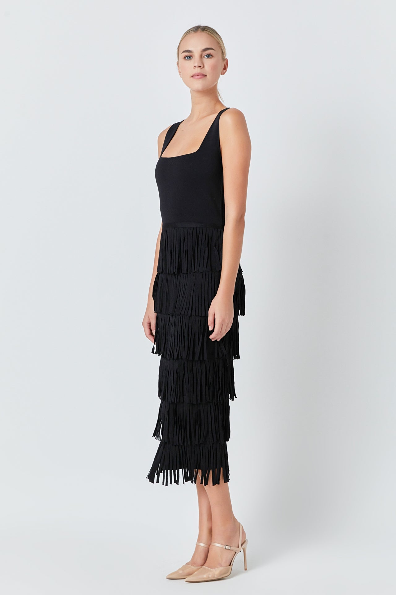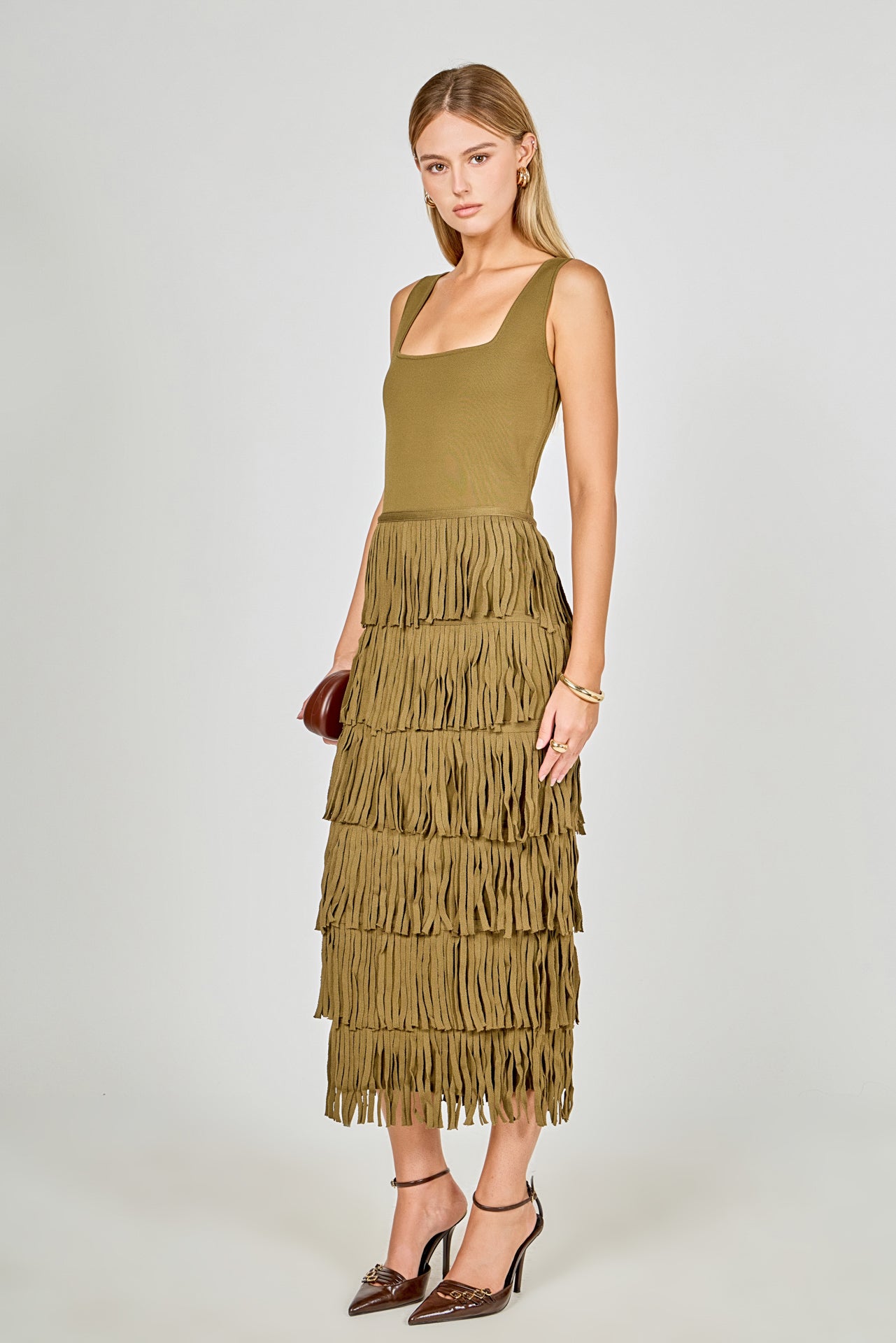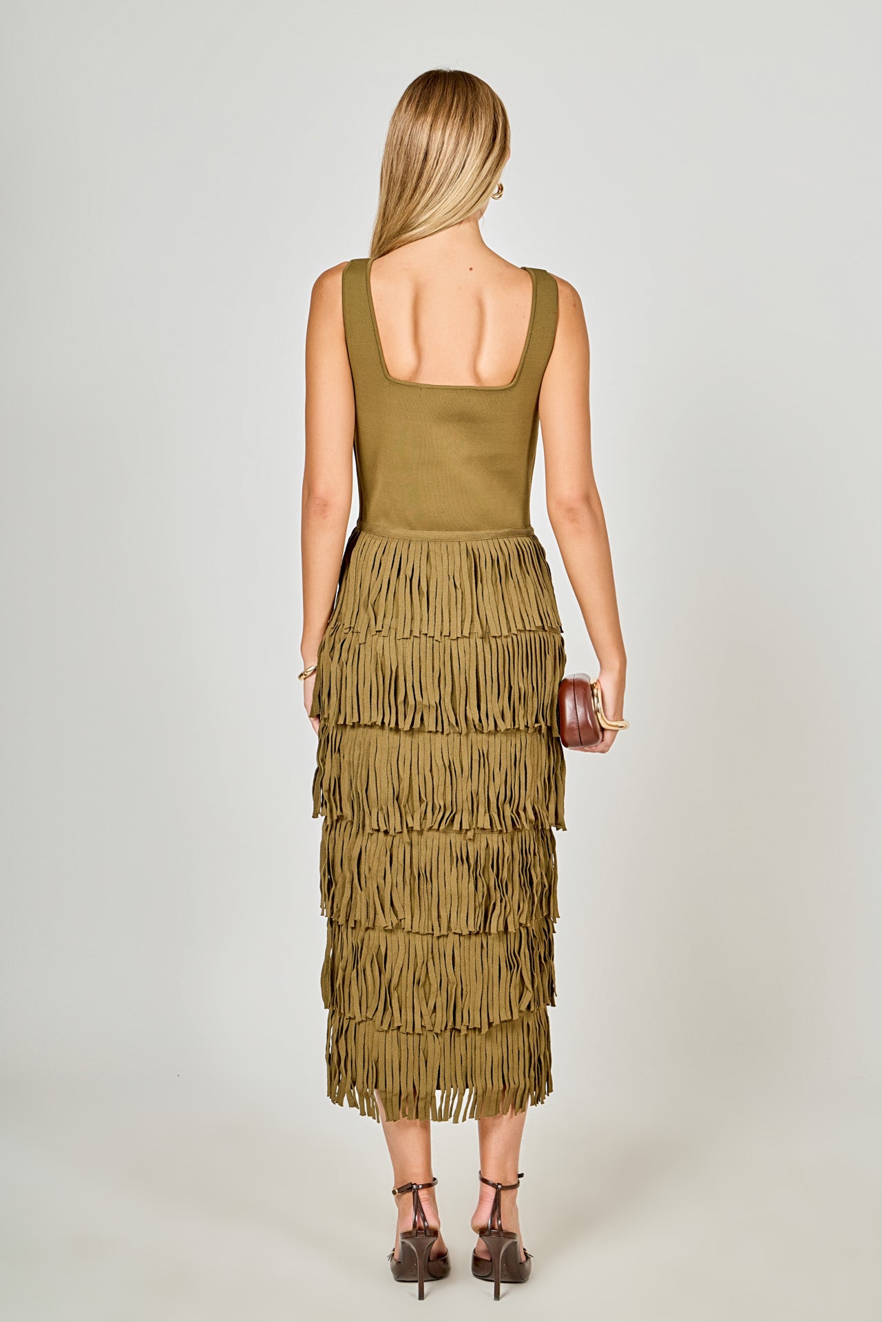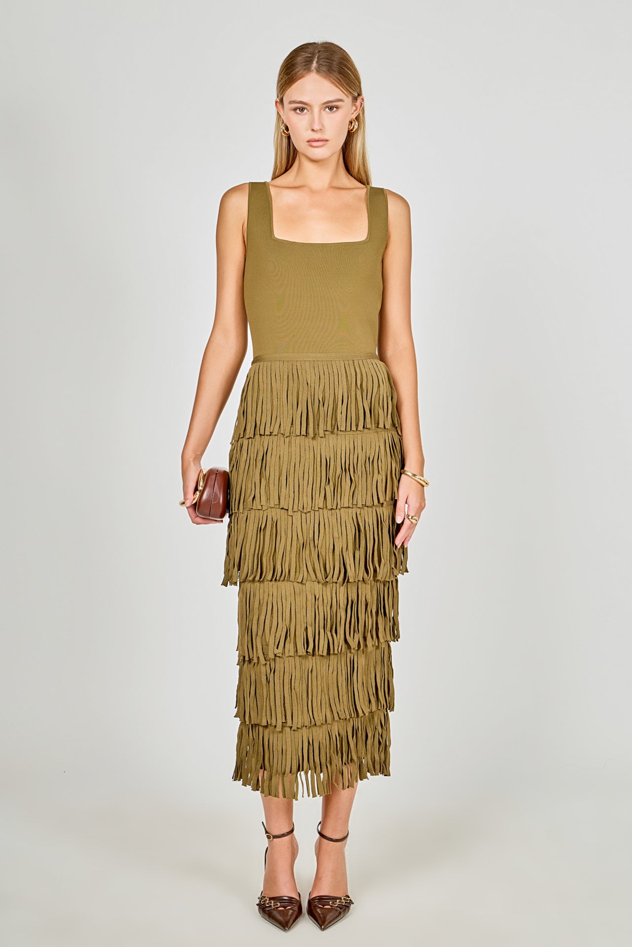 This beautiful Knit Fringe Long Dress is perfect for a special occasion. In a figure-flattering knit fabric, it features a Square neckline, a Tiered fringe skirt, and a concealed side zipper. This girlie dress stands out with its unique look, so you will be sure to get noticed. The added fringe is the perfect detail to make the dress extra special. Shop now, and you'll be ready for any event.