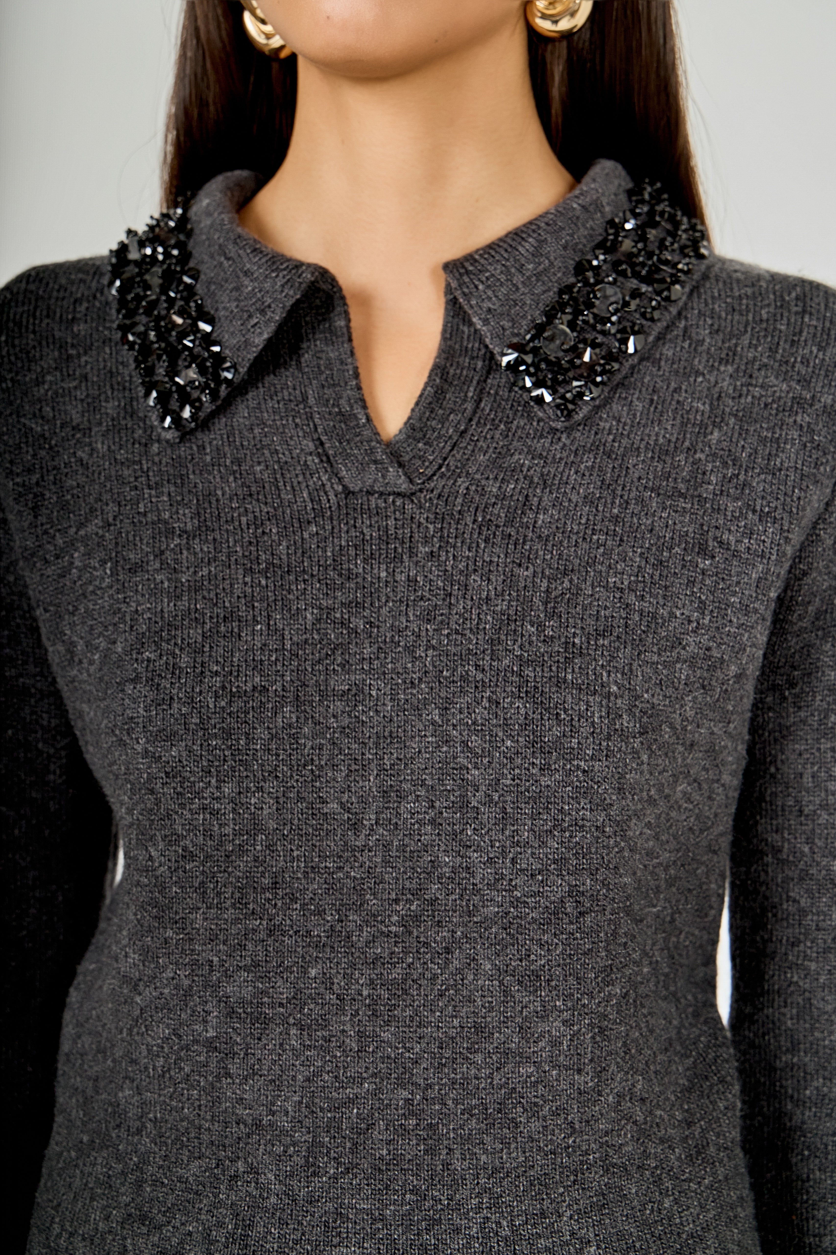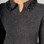 Knit Jewel Trim Collared Sweater