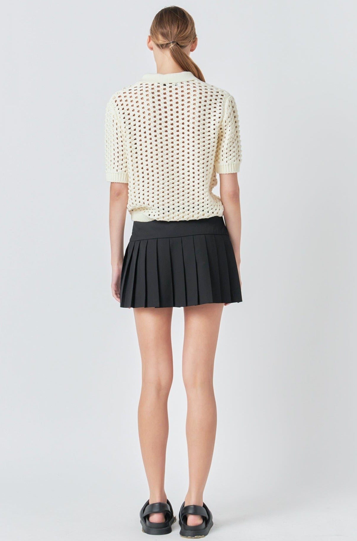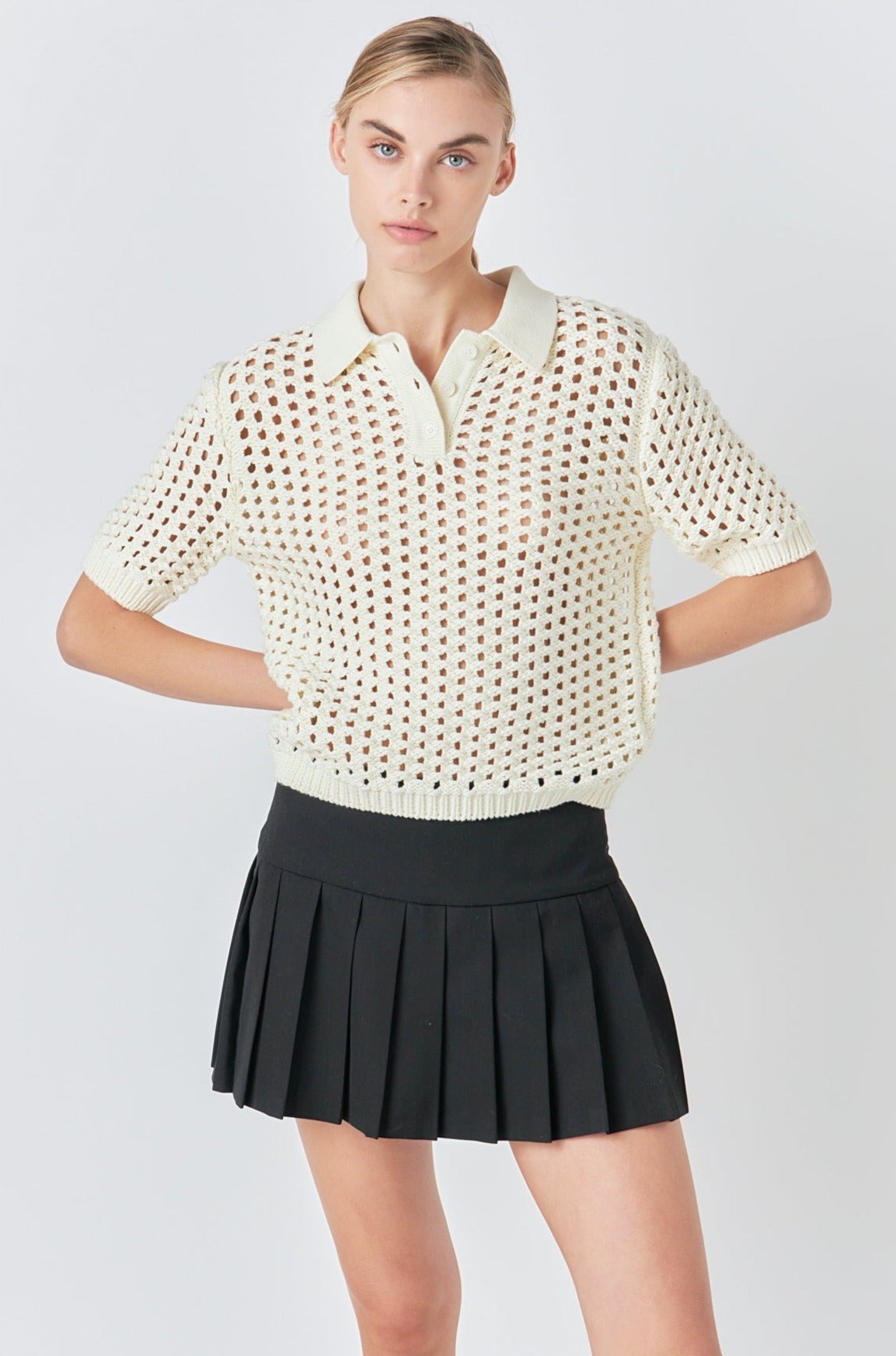 Unleash your style with our Knit Mesh Shirt. Made with breathable mesh material, this shirt is perfect for warmer weather. The knitted design adds texture and dimension, making it a standout piece in your wardrobe. A classic collared neckline adds sophistication, while the relaxed fit ensures comfortable wear all day long. Whether paired with jeans for a casual look or dressed up for a night out, this versatile shirt will be your go-to for any occasion. Elevate your fashion game with our Knit Mesh Shirt.