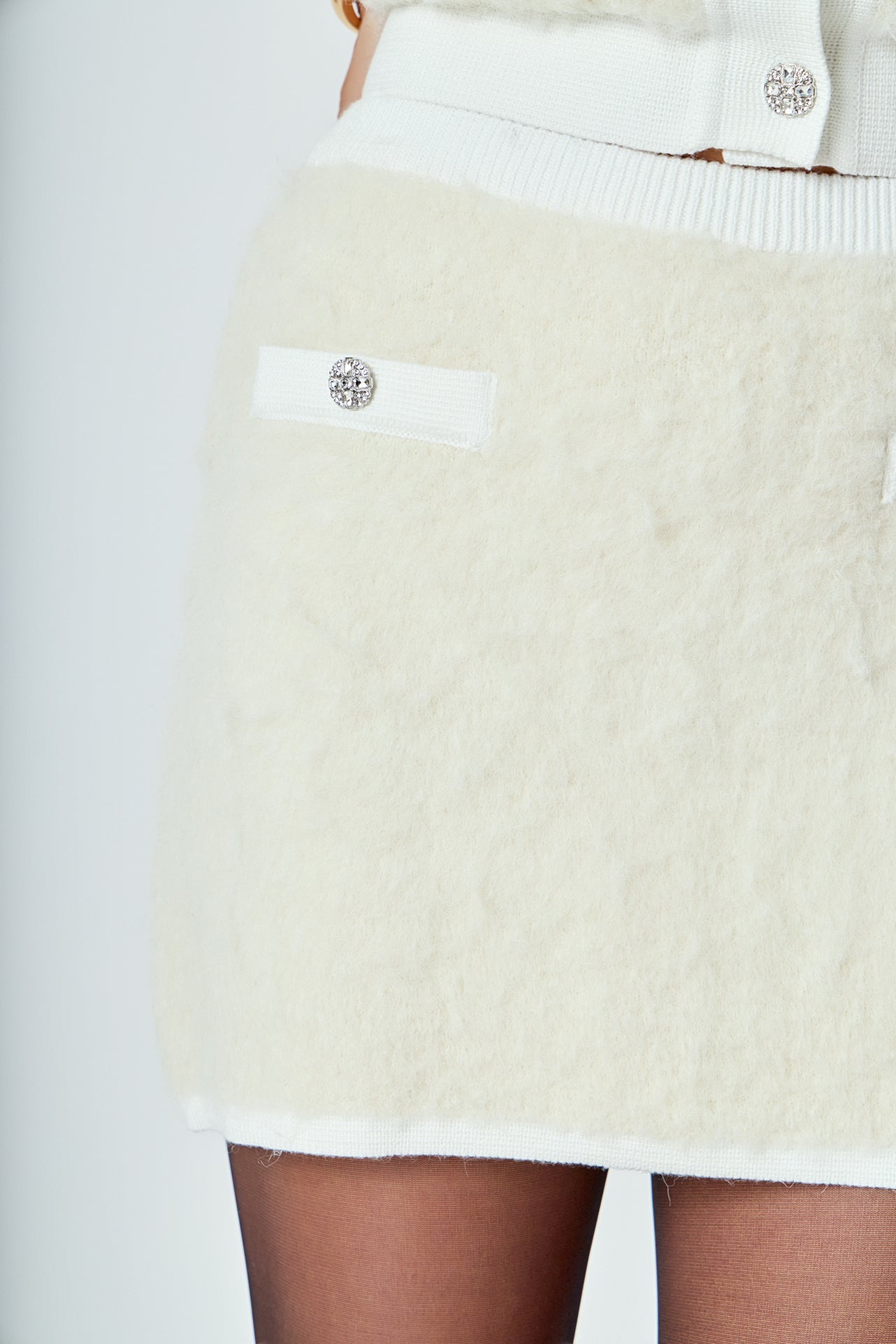Refresh your skirt rotation with our Knit Mini Skirtâ€â€a seamless blend of comfort and chic design. Crafted from soft, cozy knit fabric, this skirt features a subtle non-functional welt pocket that adds a refined detail without compromising simplicity. Its versatile silhouette makes it easy to dress up with heels or keep casual with flats. Inspired by timeless French style and expertly handcrafted, this mini skirt is the perfect piece to elevate your everyday wardrobe.