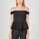 Knit Pleated Off Shoulder Top