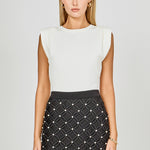 Introducing our Knit Pleated Shoulder Top, the ultimate combination of style and comfort. This top features a round neck and sleeveless design, perfect for any season. Crafted from the softest knit fabric, it offers a luxurious fit and feel. The standout feature of this top is its elegant pleated shoulder, adding a touch of sophistication to your outfit. Shop now and embrace effortless style.