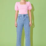 Knit Square Neck Puff Top