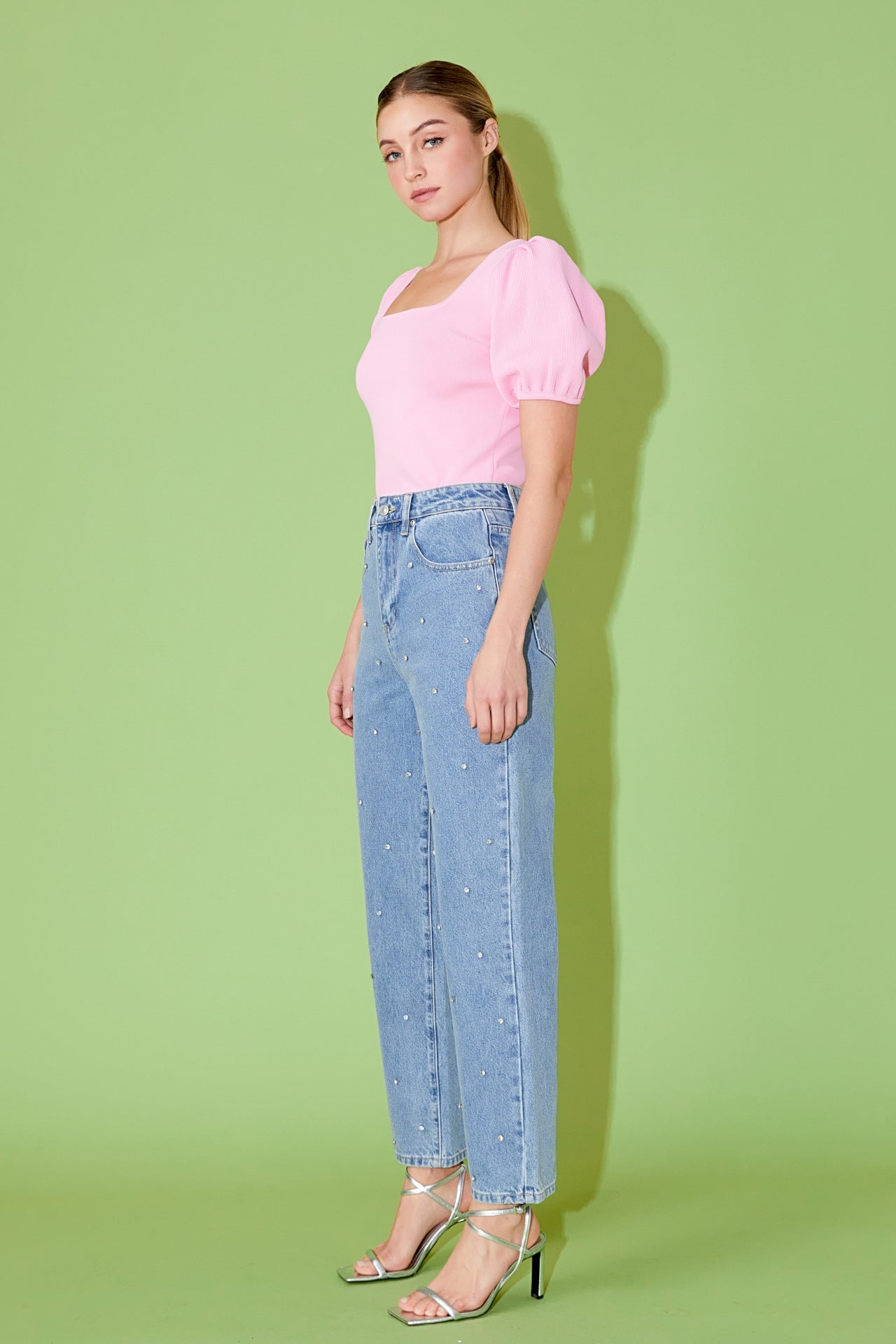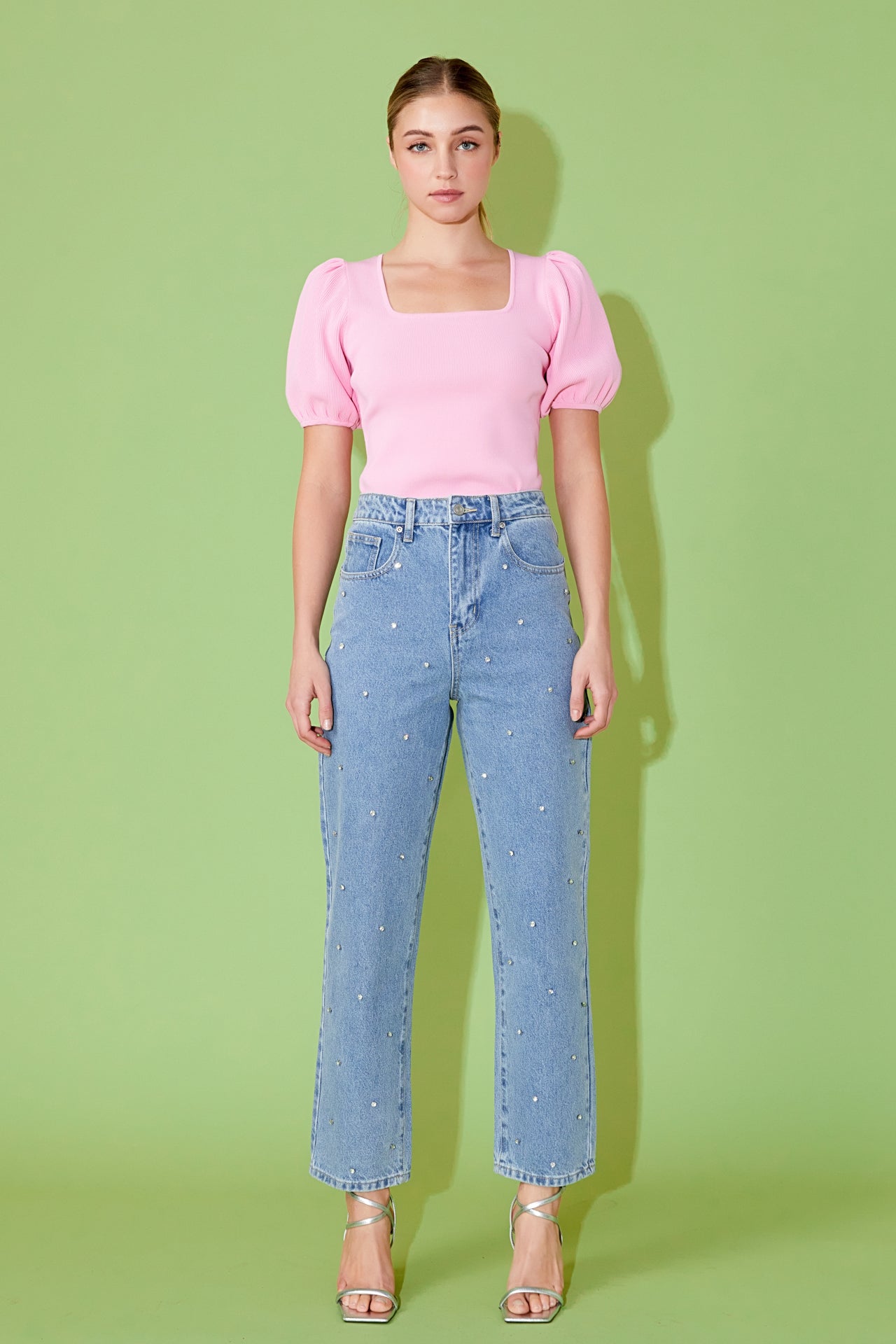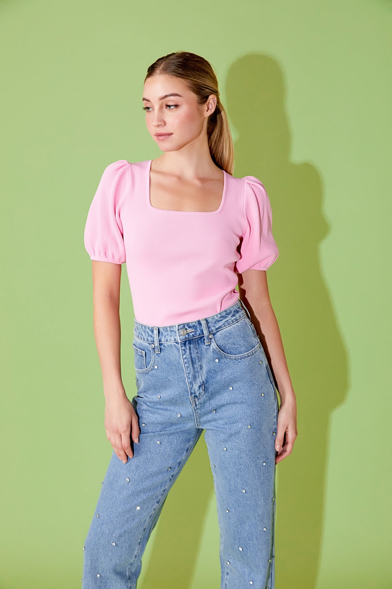 Add a touch of sweetness to your style with this puff top. It's made with sweater knit fabric for a comfortable and warm fit. The puff sleeves and square neckline give it a vintage feel, while the fitted silhouette keeps it modern.