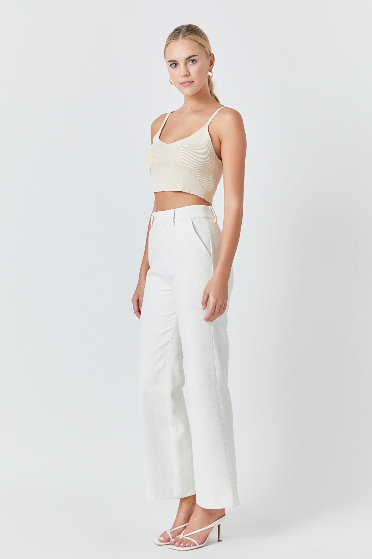 Add a touch of luxury to your everyday look. Made with a soft and comfortable knit fabric, this top is perfect for layering or wearing on its own. With delicate shoulder straps and a fitted silhouette, this top will add some glamor to any outfit. Wear it with jeans and a blazer for a night out, or dress it up with some trousers for work.