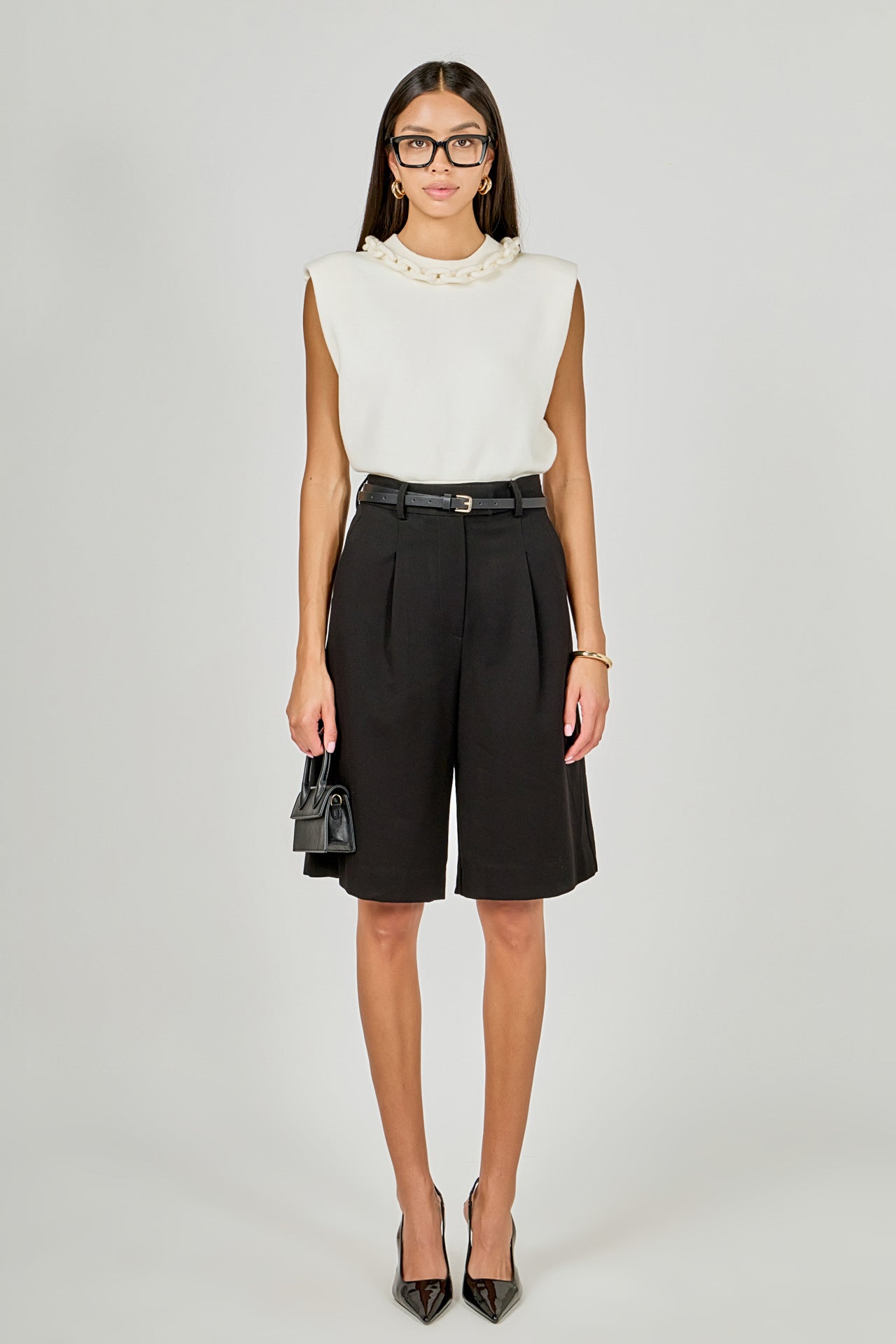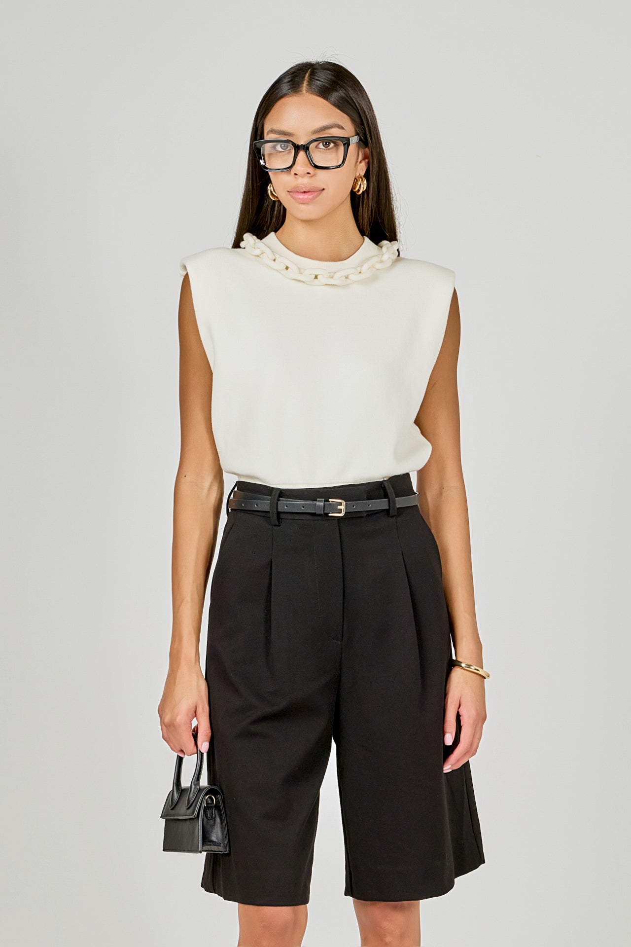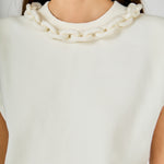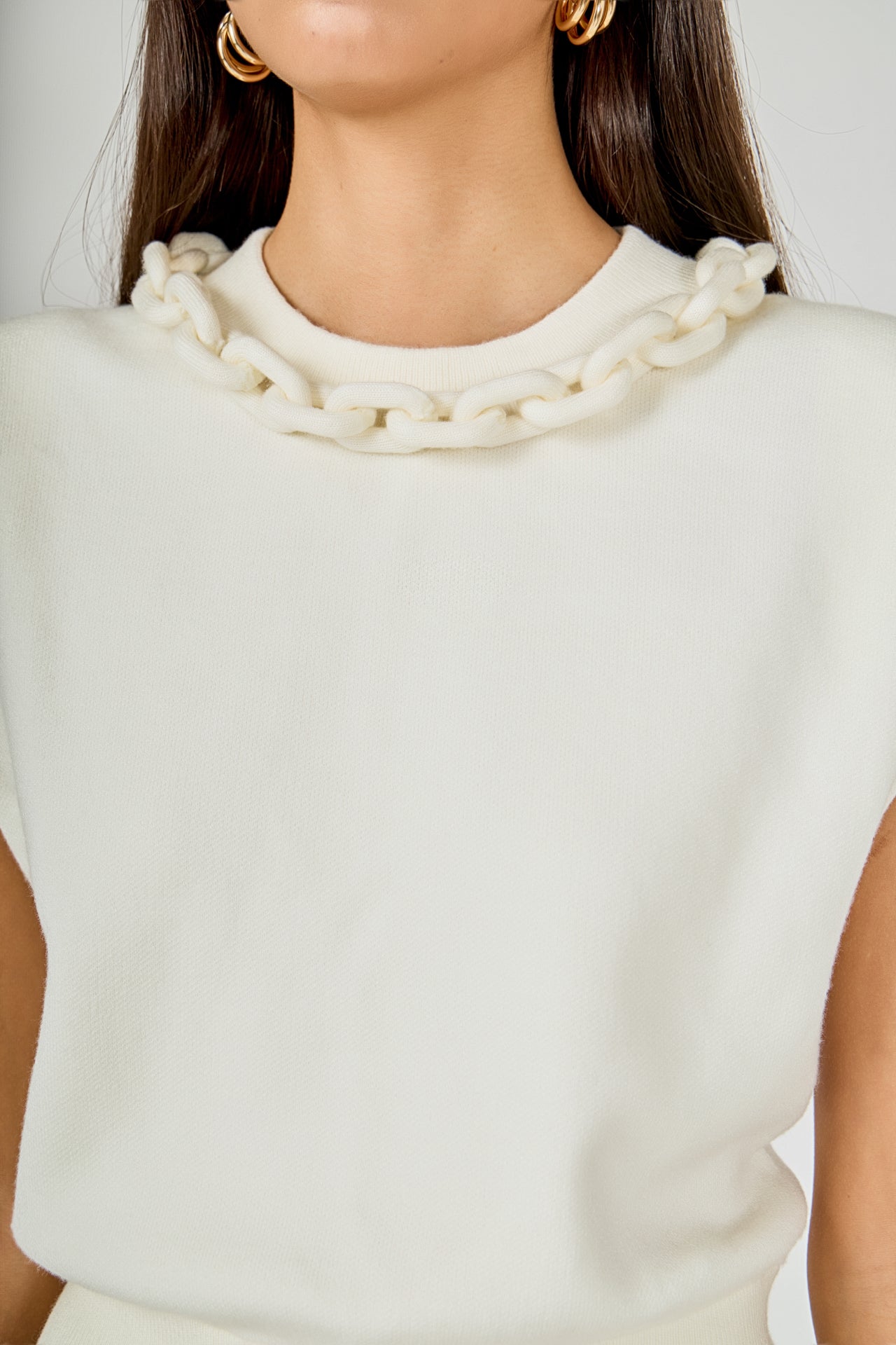 Elevate your wardrobe with our Gia Knitted Chain Detail Sleeveless Top. Designed with a classic crew neckline and subtle shoulder padding, this top offers structure and a flattering fit. The intricate knitted chain detailing adds a modern, stylish edge, making it a standout piece for any occasion. Made from soft, high-quality materials, it’s comfortable enough for all-day wear yet effortlessly chic. Pair it with tailored pants or a skirt for a polished look, or dress it down with jeans for casual sophistication. A versatile and fashion-forward addition to any wardrobe.