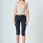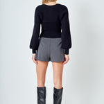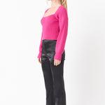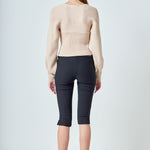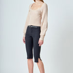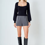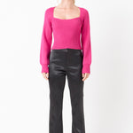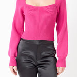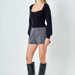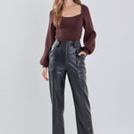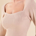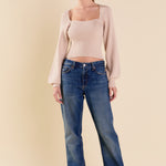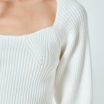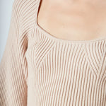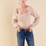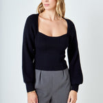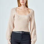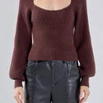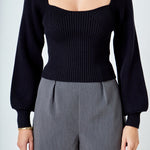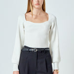 Warm and versatile, this top is knit from a light and airy ribbed fabric that's perfect for layering. The square neckline and puff sleeves are just the right amount of feminine to take you from day to day. Pair with your favorite jeans and boots or a skirt for a more feminine look.