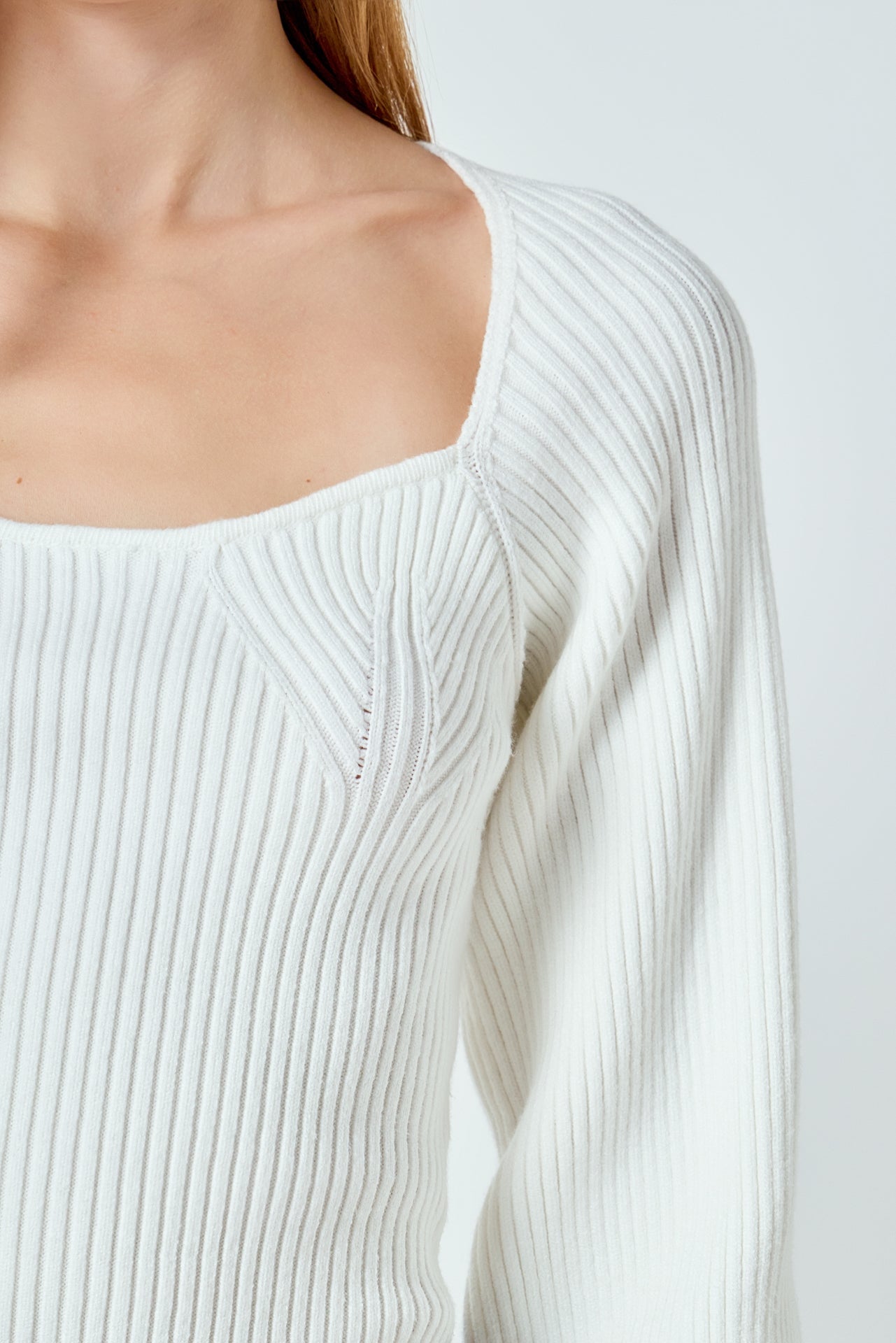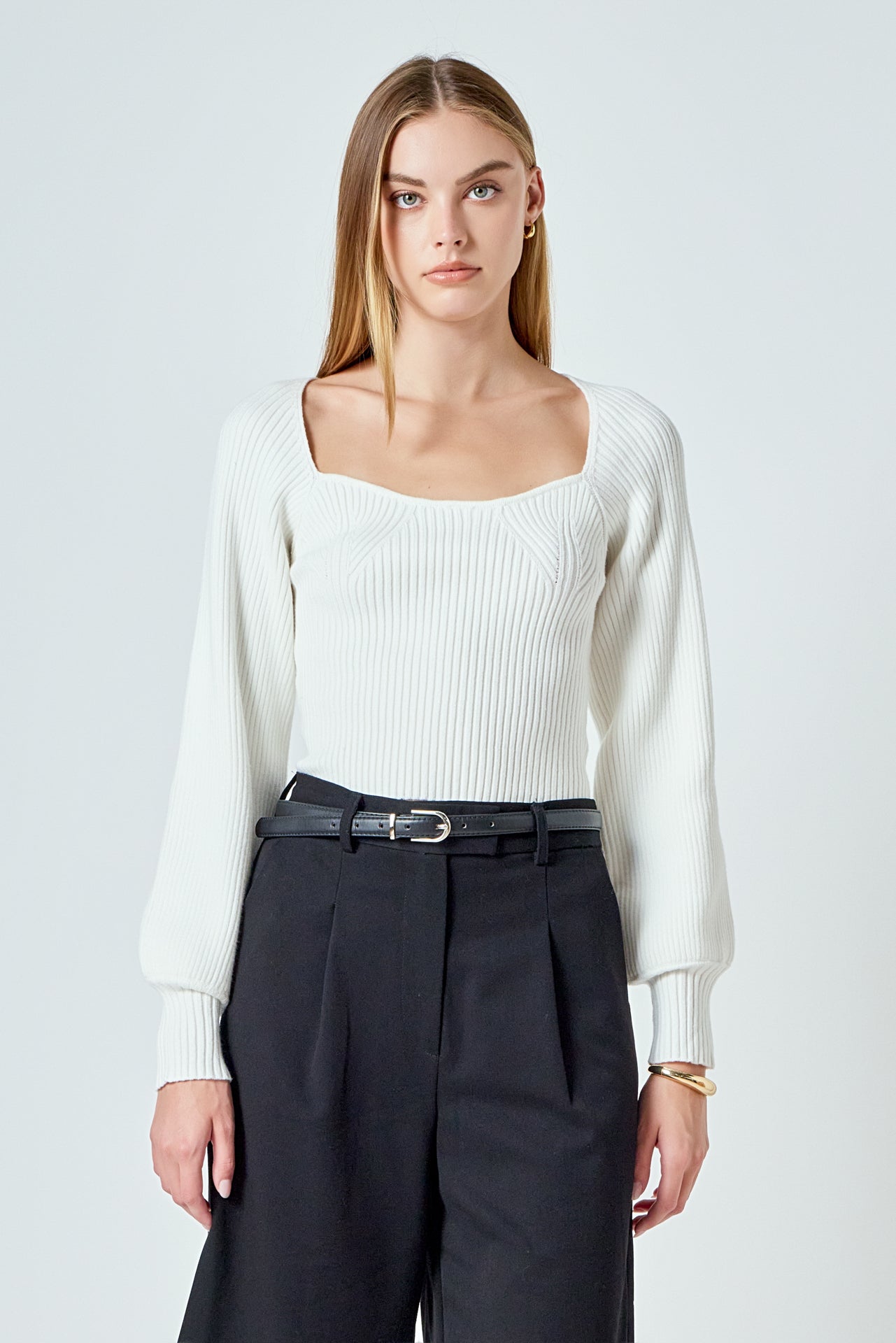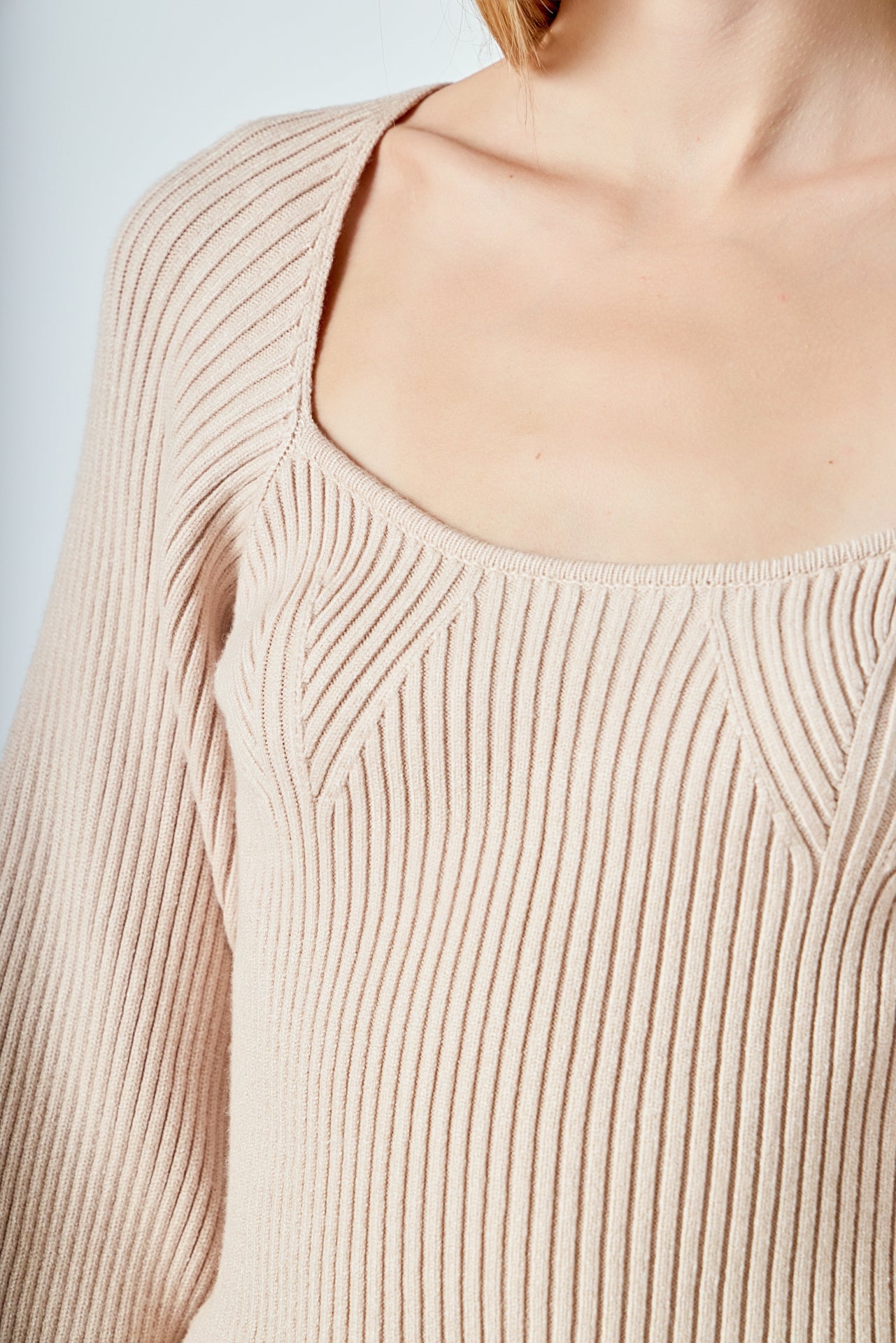 Warm and versatile, this top is knit from a light and airy ribbed fabric that's perfect for layering. The square neckline and puff sleeves are just the right amount of feminine to take you from day to day. Pair with your favorite jeans and boots or a skirt for a more feminine look.