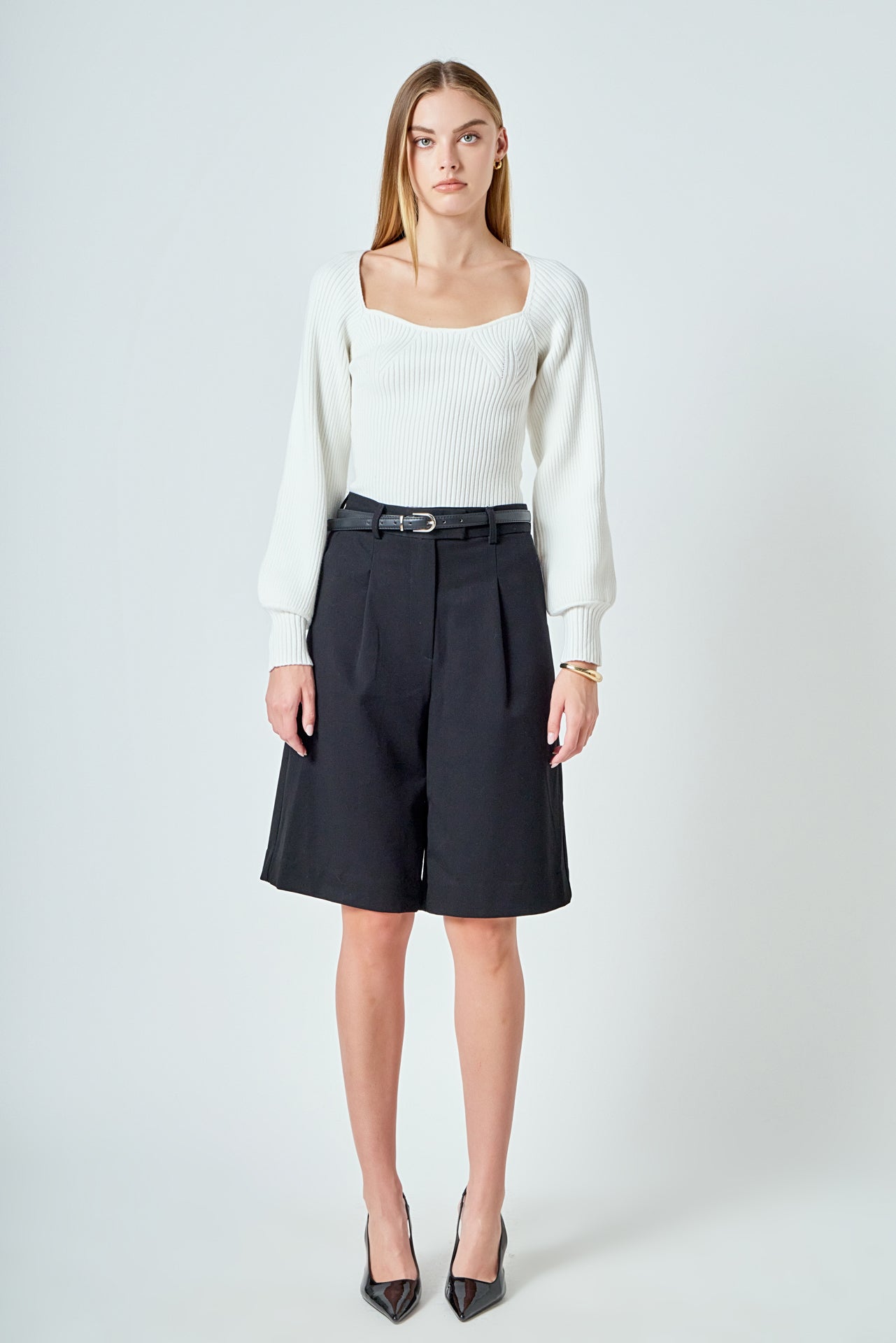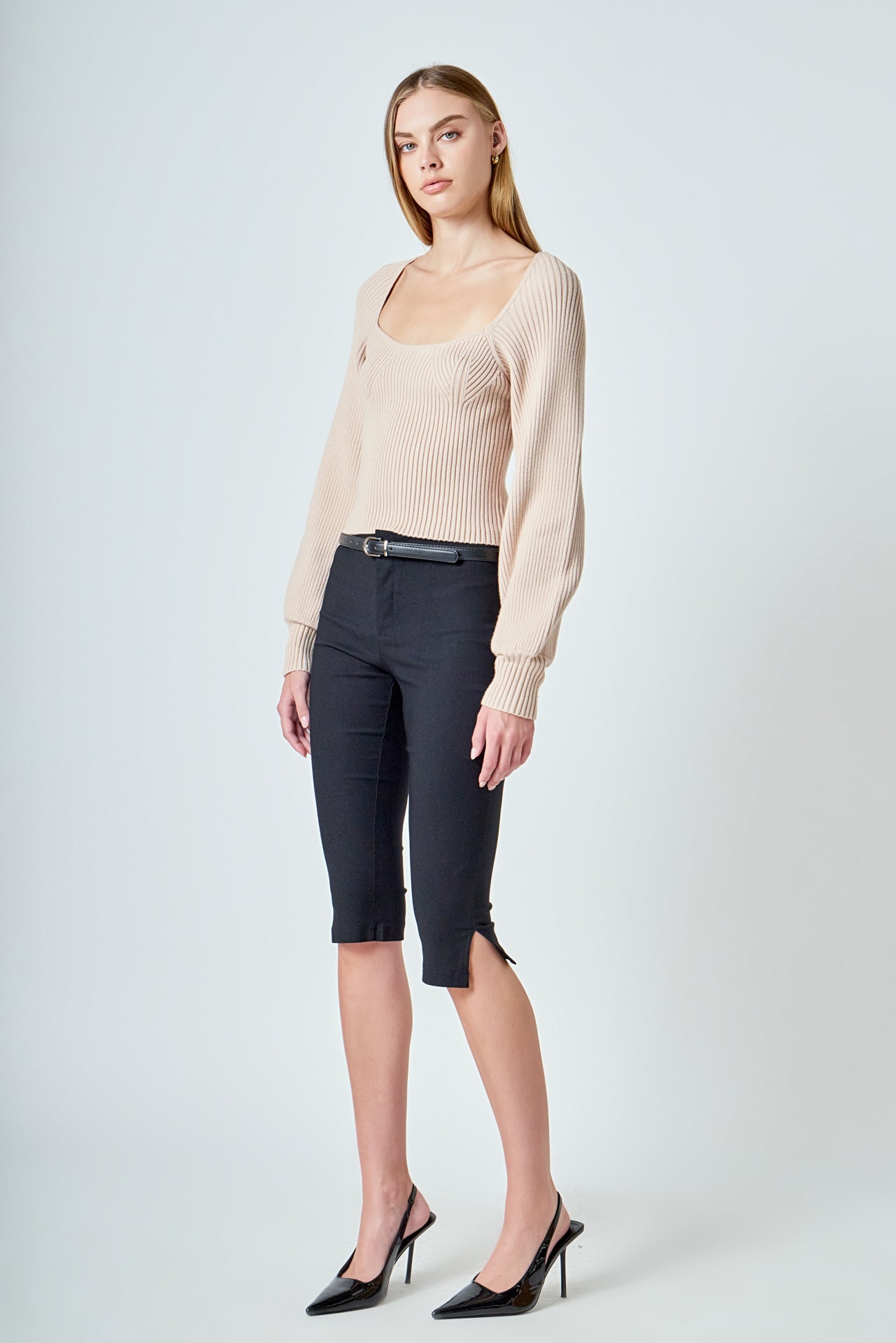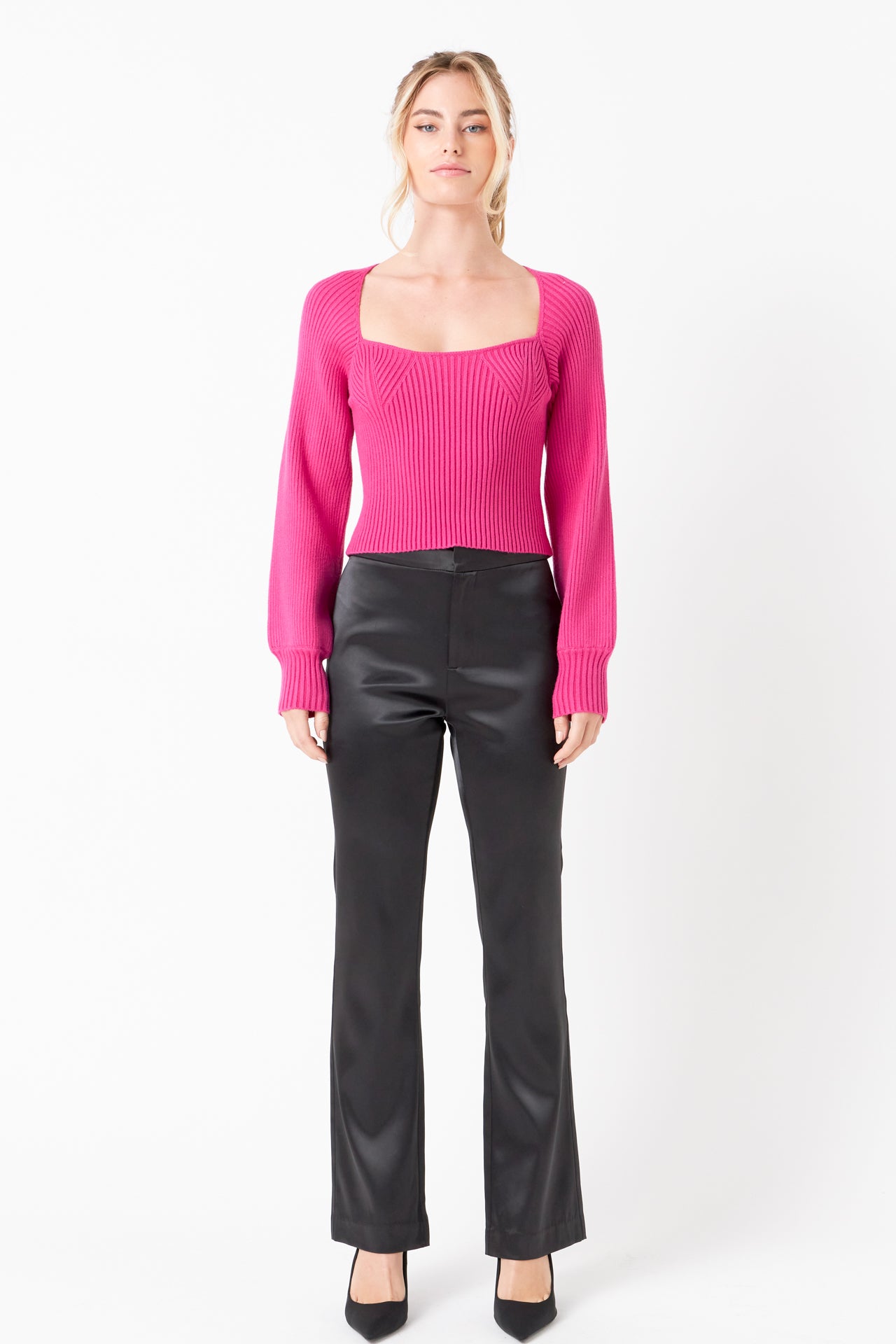 Warm and versatile, this top is knit from a light and airy ribbed fabric that's perfect for layering. The square neckline and puff sleeves are just the right amount of feminine to take you from day to day. Pair with your favorite jeans and boots or a skirt for a more feminine look.