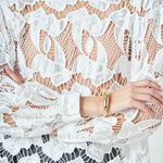 Introducing our must-have Lace Blouse, the perfect addition to your wardrobe! This top features long sleeves and a round neckline, ensuring both style and comfort. The delicate lace detailing adds a touch of femininity, while the back hook and button closure offers a secure fit. Perfect for any occasion, this blouse can be dressed up or down. Don't miss out on this versatile piece that will quickly become your go-to. Shop now and elevate your wardrobe with our lace blouse!
