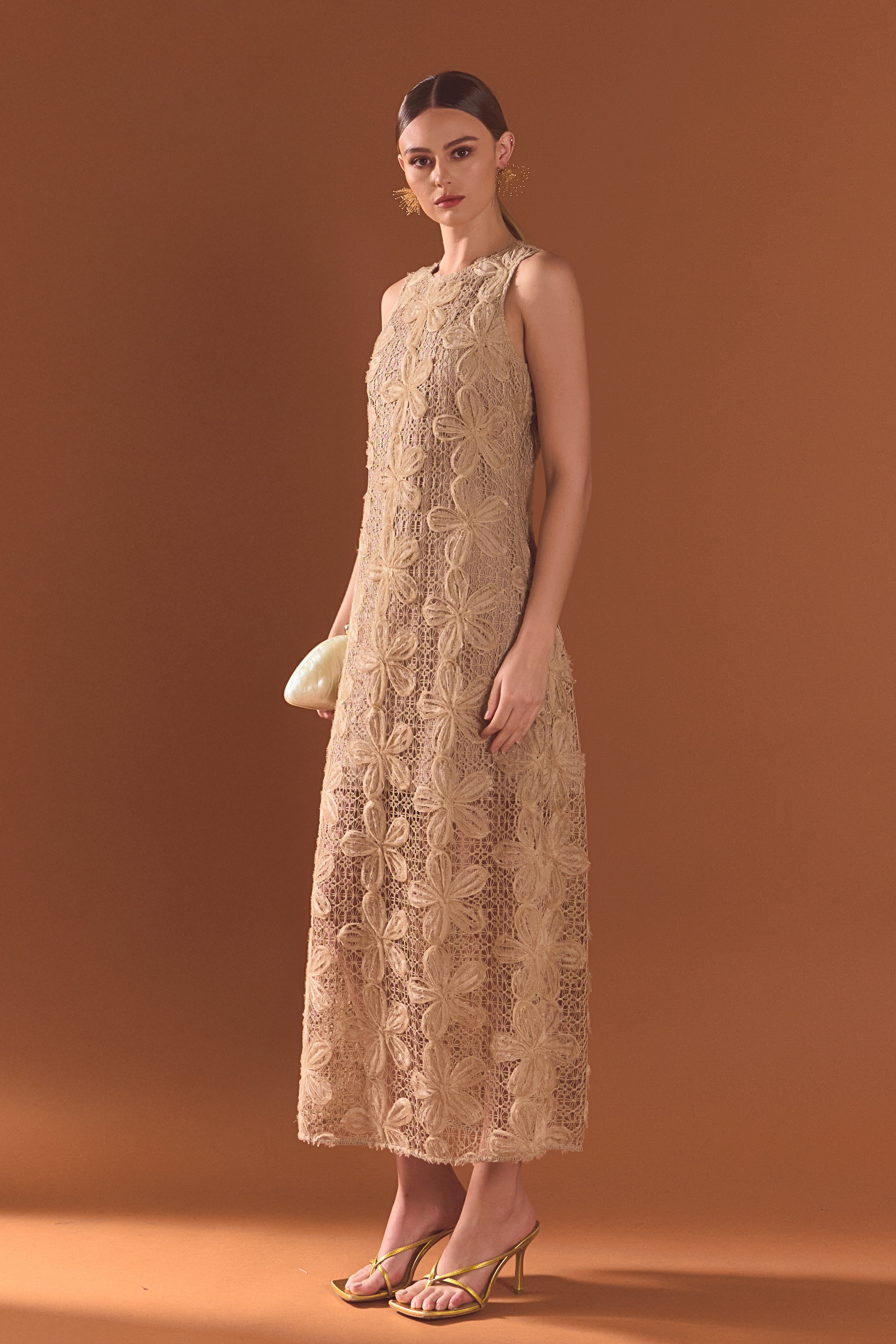Embrace timeless elegance in our Lace Midi Dress. Crafted from soft lace, it drapes beautifully over the body, creating a flattering, flowy silhouette. Delicate lace trim add a feminine touch and allow for a customizable fit. The empire waist enhances your shape, while the floor-length cut adds sophistication and glamour. Perfect for weddings, galas, or romantic evenings, this dress is a must-have for a polished, elegant wardrobe.