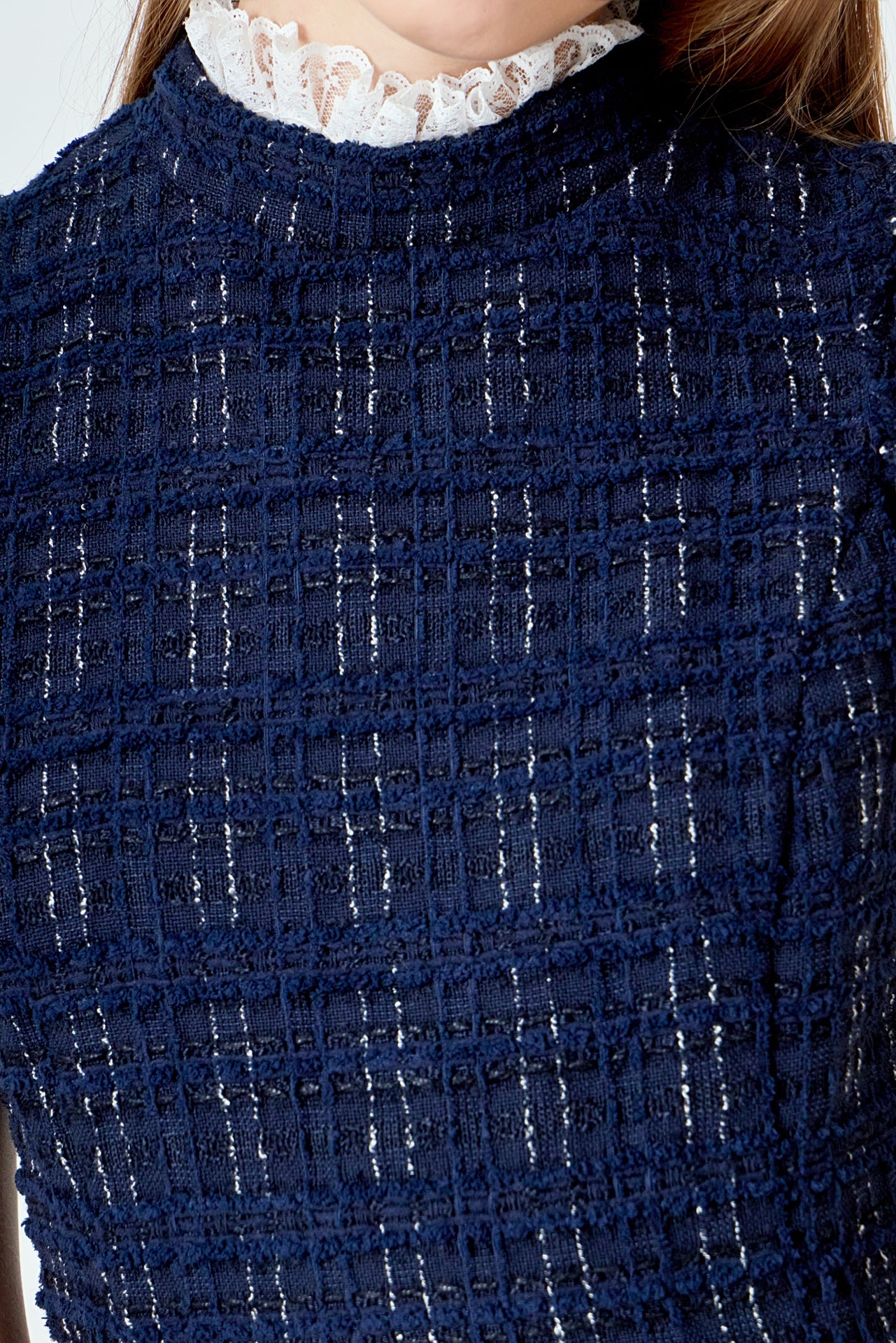 Effortlessly elegant and chic, our Lace Detail Tweed Mini Dress is sure to turn heads. The mini length shows off your legs, while the removable lace adds a touch of flirty femininity. Made from high-quality tweed, it's soft, comfortable, and perfect for any occasion. The mock neck band adds a sophisticated touch and elevates the overall look. With its versatile design and superior craftsmanship, this dress will become your go-to for any event. Stand out from the crowd in style and shop our Lace Detail Tweed Mini Dress now.