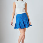 Our Lace Fit and Flare Mini Skirt is playful yet elegant. The feminine silhouette cinches at the waist before flaring out, while the intricate lace fabric adds a delicate and romantic touch. Designed with a sleek side zipper for ease and fit, this mini length skirt is perfect for evenings out or weekend occasions. A versatile piece that brings sophistication and fun to your wardrobe.