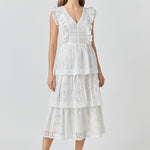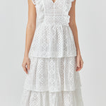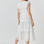 This beautiful Lace Tiered Midi Dress is perfect for any special occasion. Crafted from delicate lace fabric, this dress has tiers of lace across the length, creating an elegant, feminine look. The cut of the dress is perfect to show off the natural beauty of you figure, while the flattering V-neckline completes the look. Finished with a zip closure and puff detailing at the sleeve, this dress is sure to turn heads. The perfect choice for a special day.